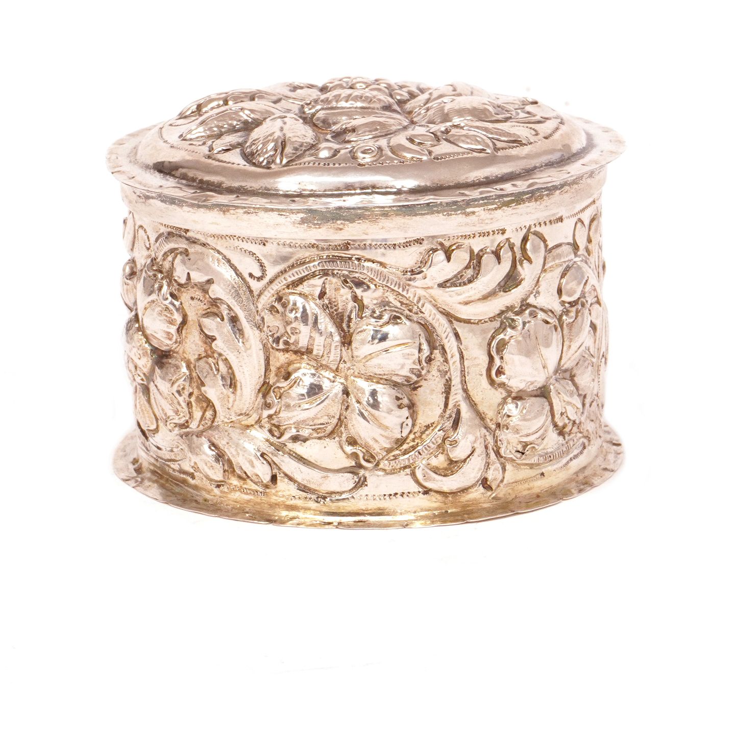 Getriebene Barock Silber Oblatendose von Thore Sørensen, Aalborg, 1704-32