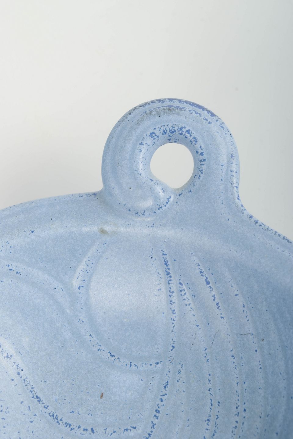 Gunnar Nylund for Rörstrand, skål.Organisk formet skål i stentøj med integreret hank og svungen, bladlignende form. Dekoreret med lys blå glasur med let struktur, typisk for Gunnar Nylunds formsprog hos Rörstrand i midten af det 20. århundrede. Første sortering.