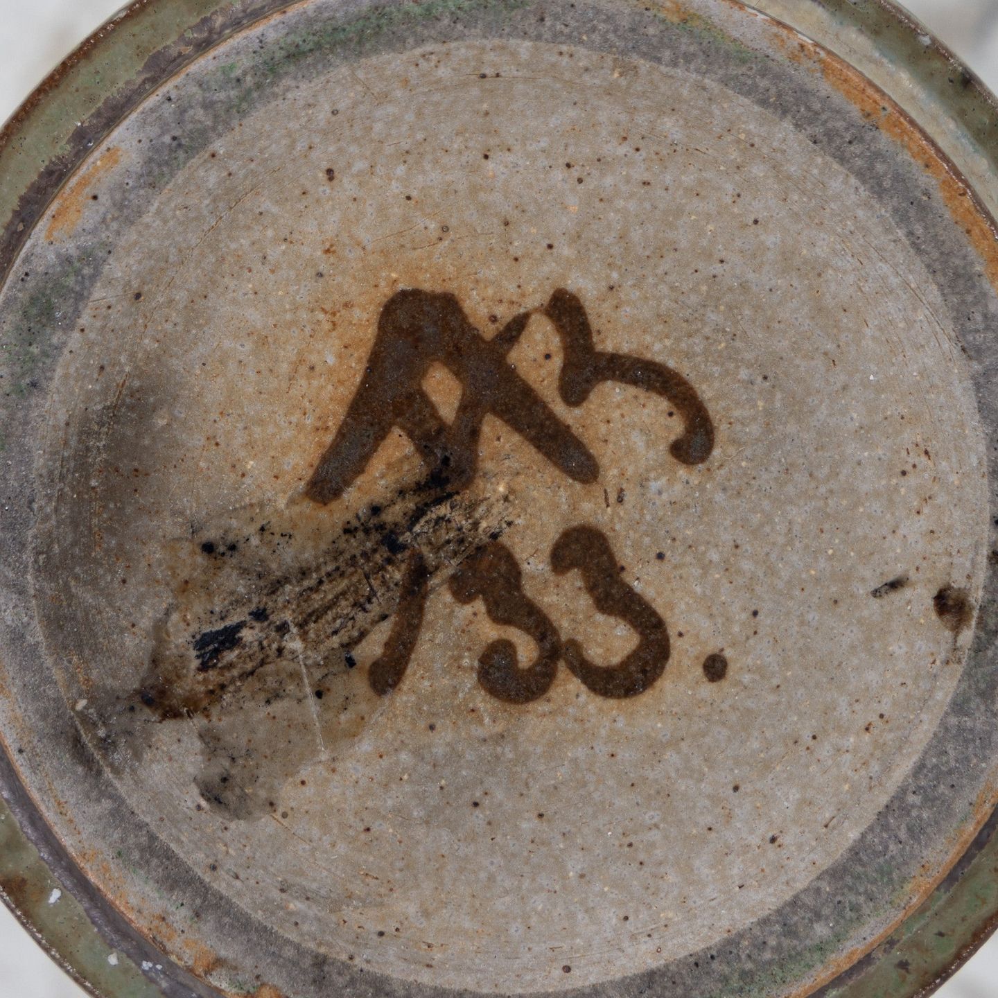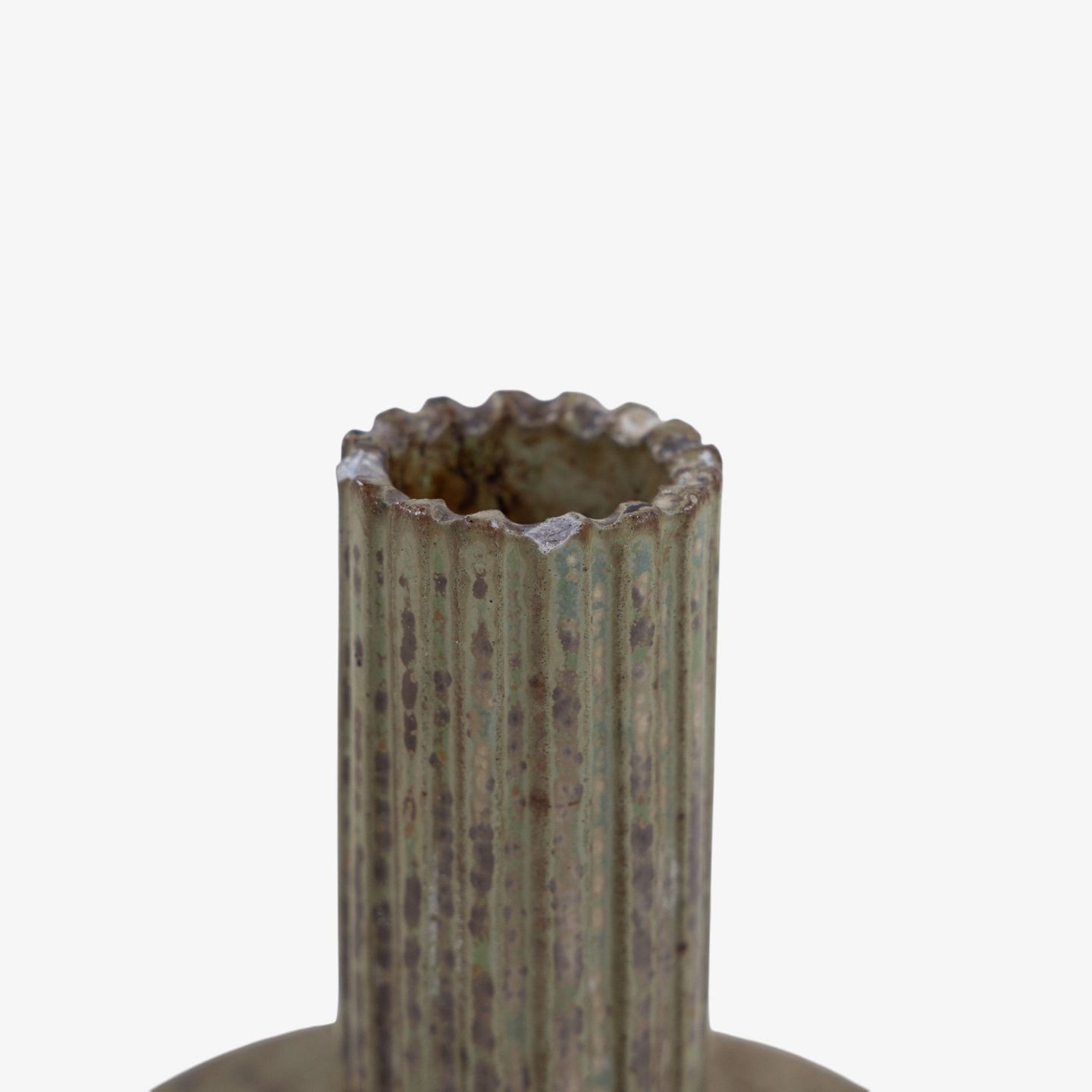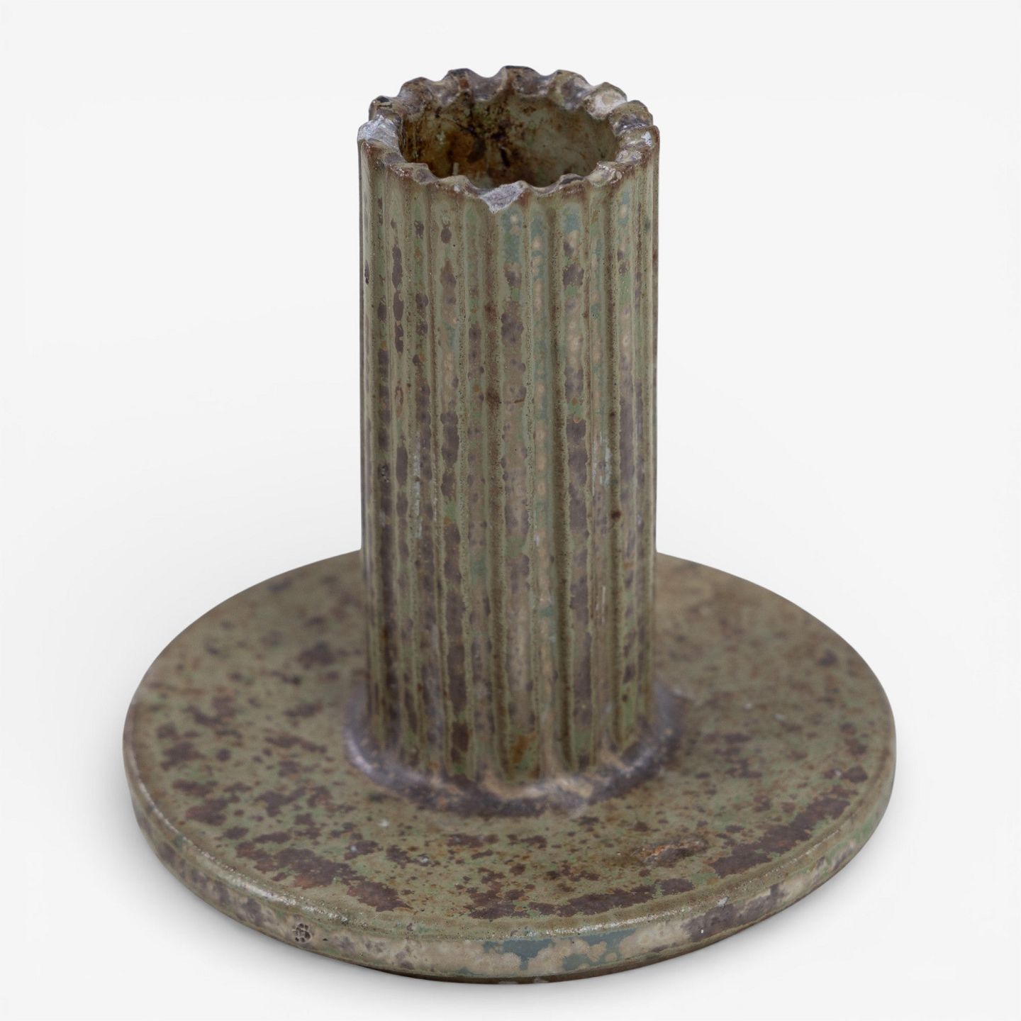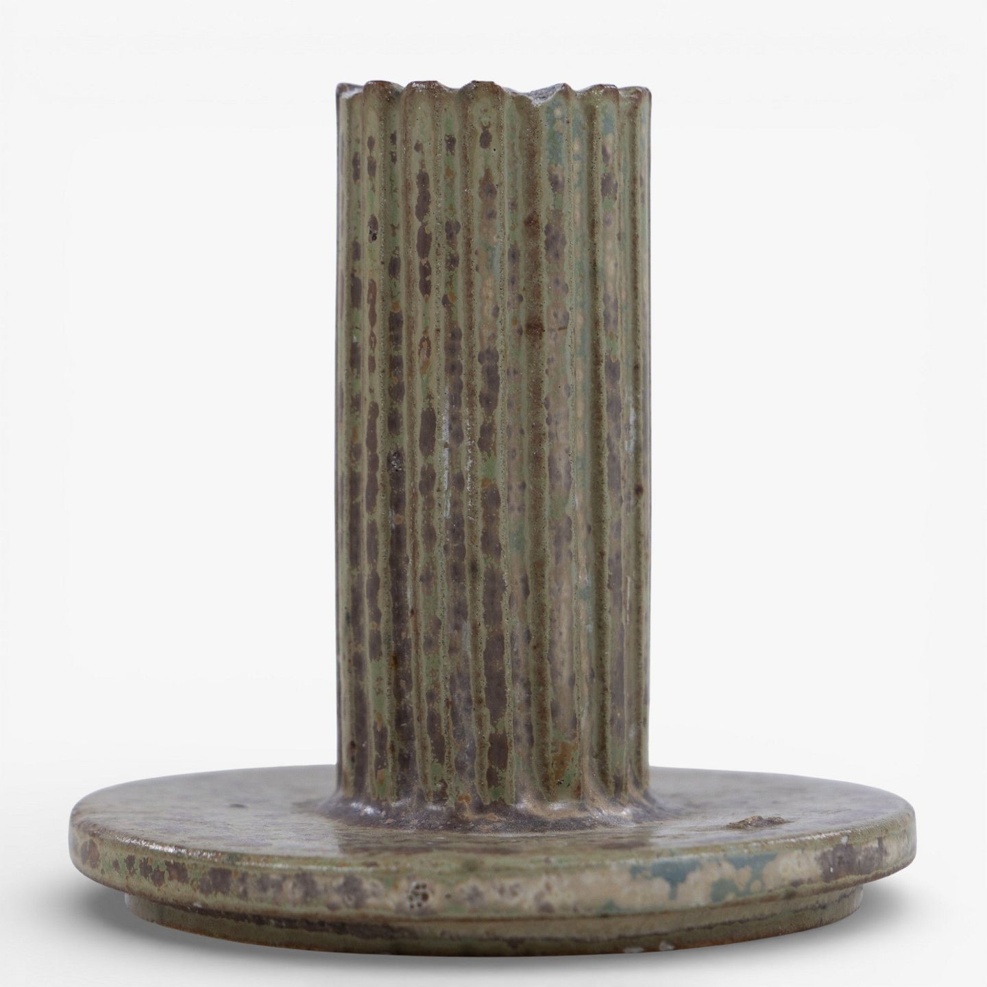 Arne Bang.Model AB 133 - Lysestage i riflet stentøj med grøn/brun glasur. Signeret.