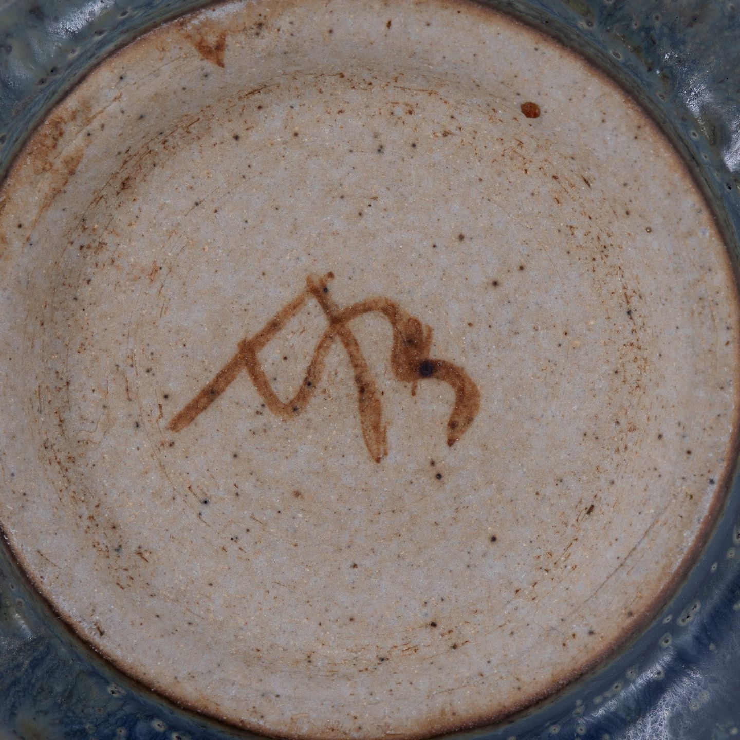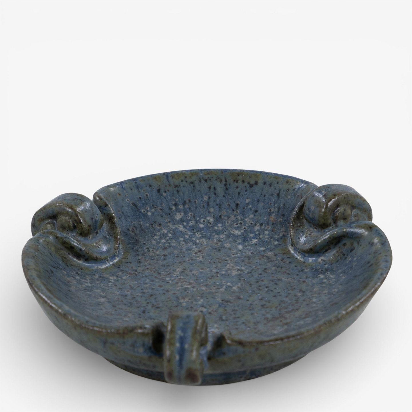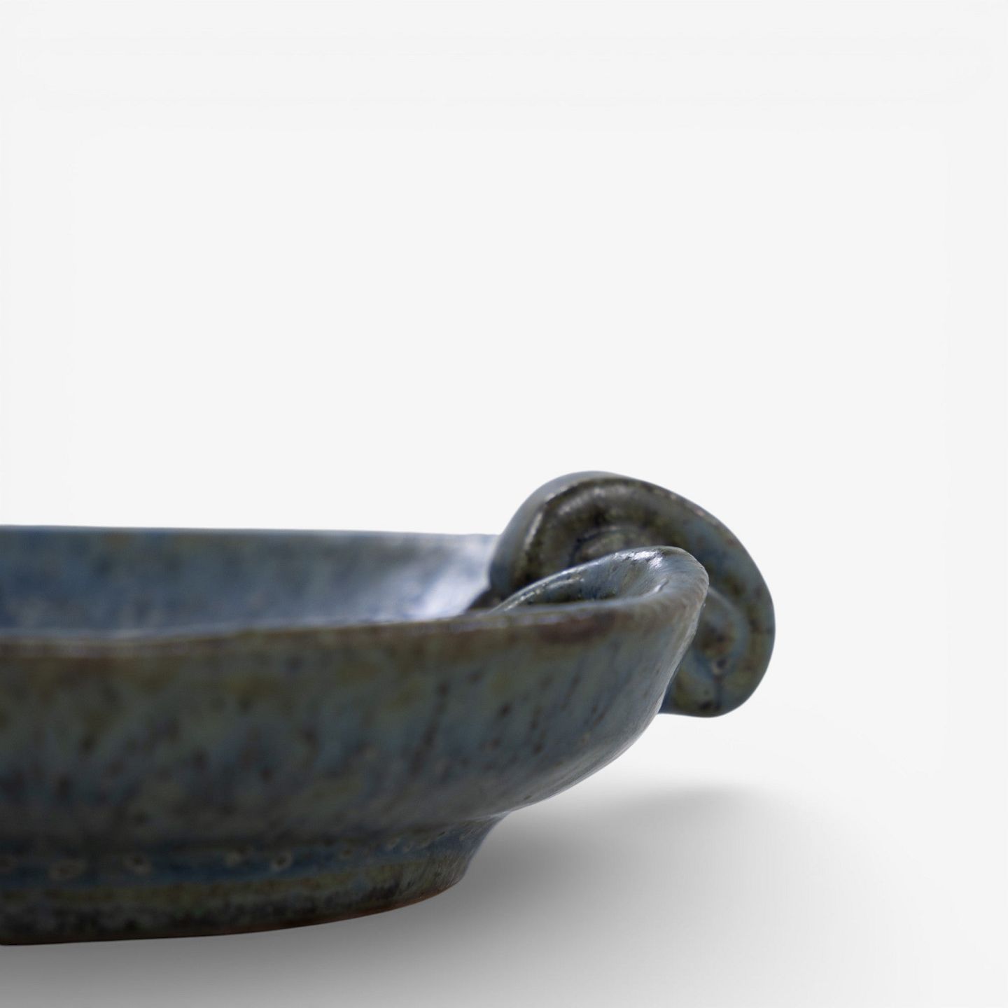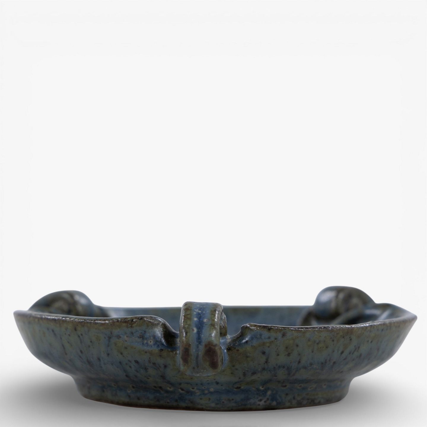 Arne Bang.Lille fad i stentøj m. blågrøn glasur. Signeret.