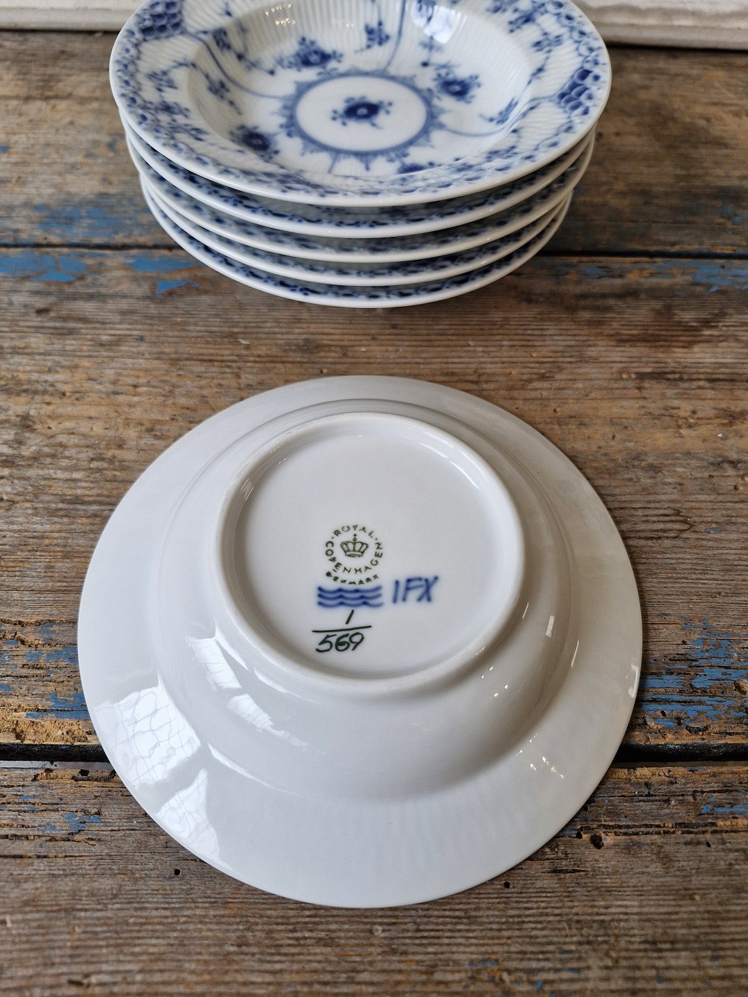Royal Copenhagen Musselmalet halvblonde lille dybtallerken No. 569, 1. sortering