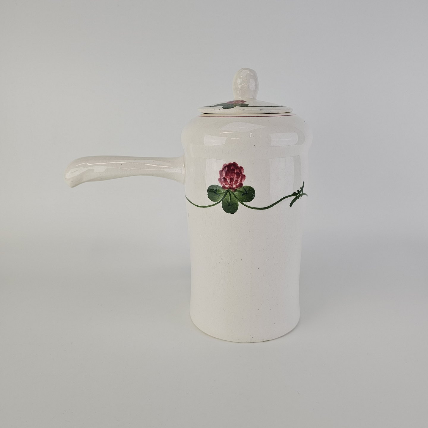 Kande i kunstfajance fra stellet Kløver. Nr. 1028/179Formgiver H. Slott-Møller år 1904