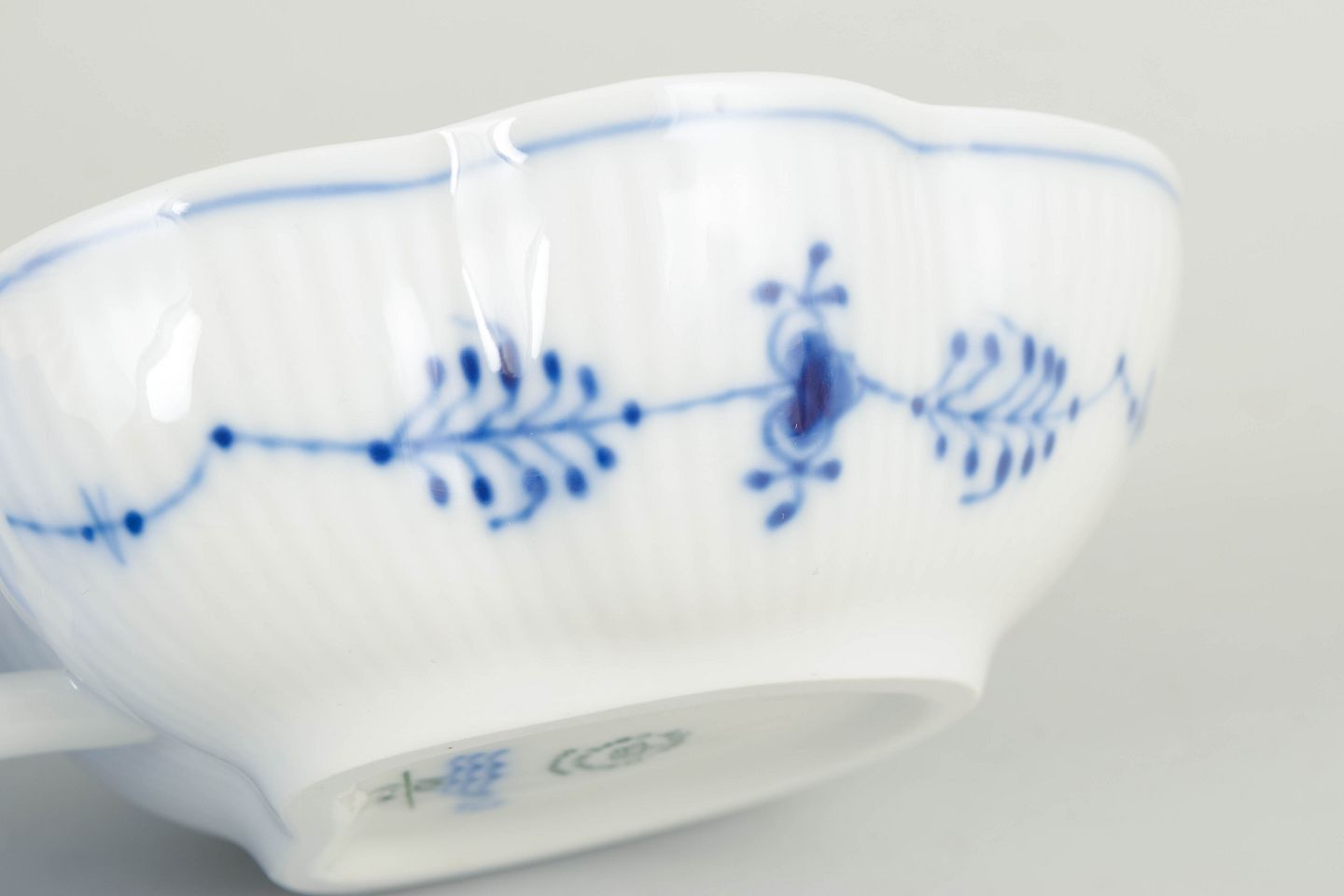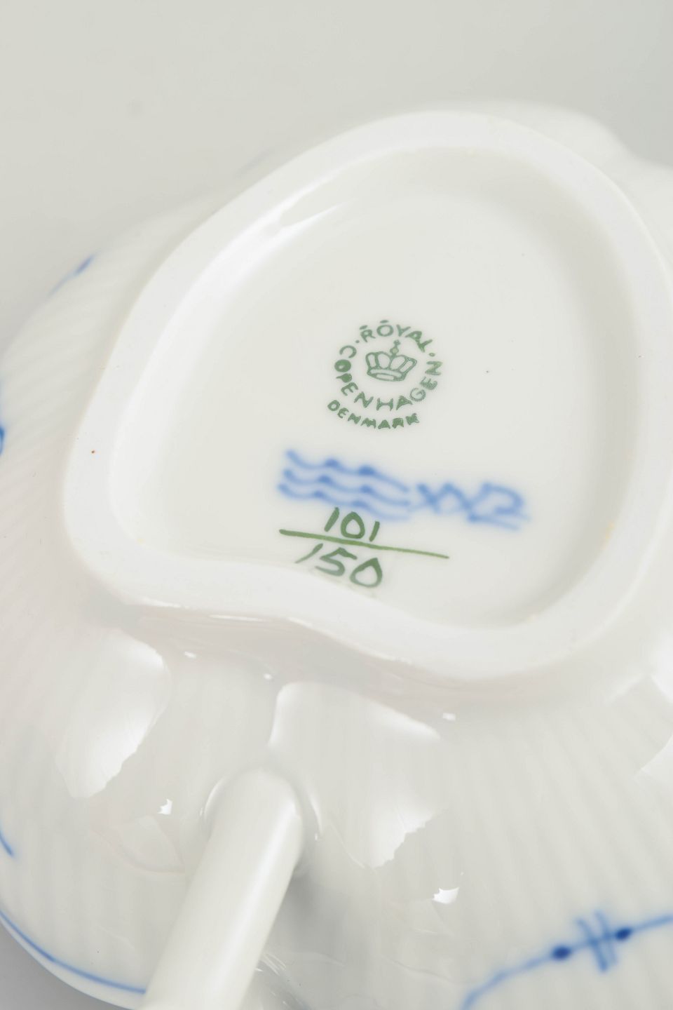 Royal Copenhagen blev grundlagt i 1775 i København under kongelig bevilling. Fabrikken er internationalt anerkendt for sit håndmalede porcelæn og sit høje kunstneriske niveau. Musselmalet Riflet er fabrikkens ældste stel, introduceret i 1775 og stadig produceret i dag, kendt for sin klassiske koboltblå dekoration og riflede form.