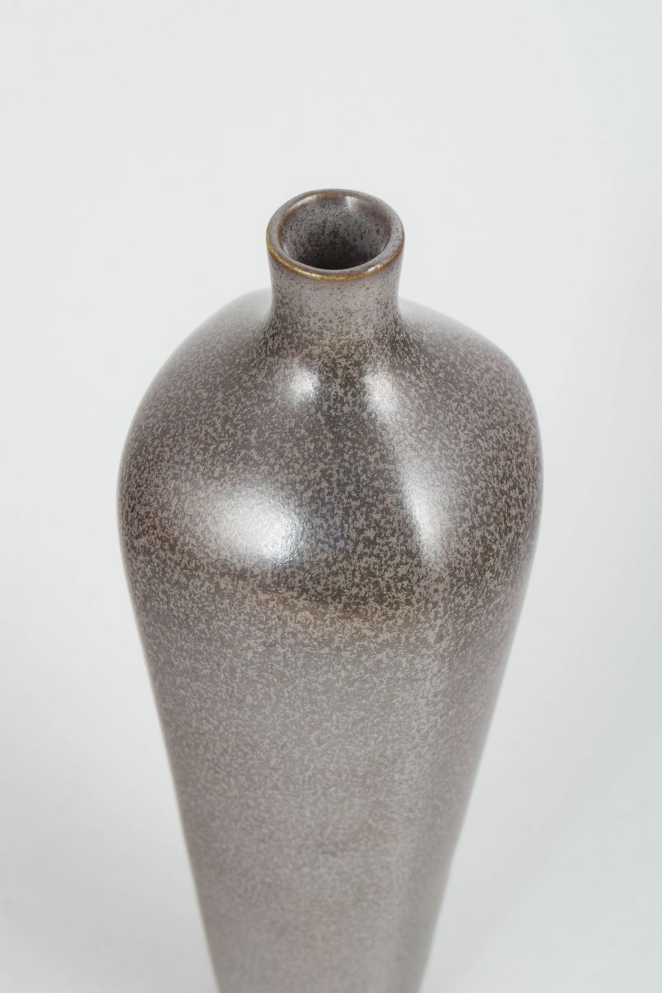 Berndt Friberg for Gustavsberg, stor Selecta vase.Stor drejet stentøjsvase med slank balusterform og smal hals. Udført i gråbrun harpelsglasur fra Selecta-serien. Stemplet Gustavsberg og Selecta i bunden.