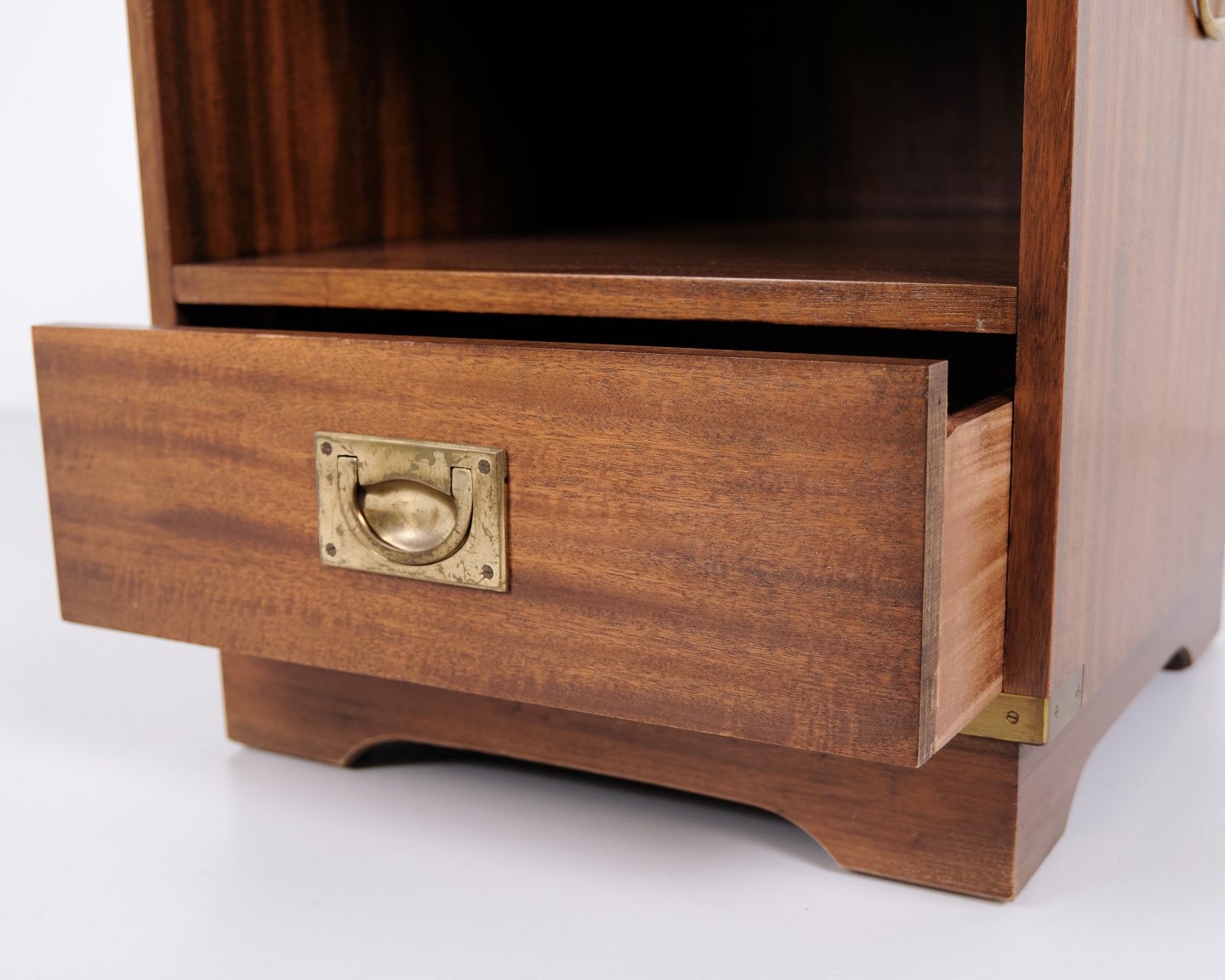 Paar Nachttische aus Mahagoni mit Lederplatte von Bevan Funnell. Military Campaign Stil aus den 1960er Jahren mit klassischem englischem Design.— Herkunft: England