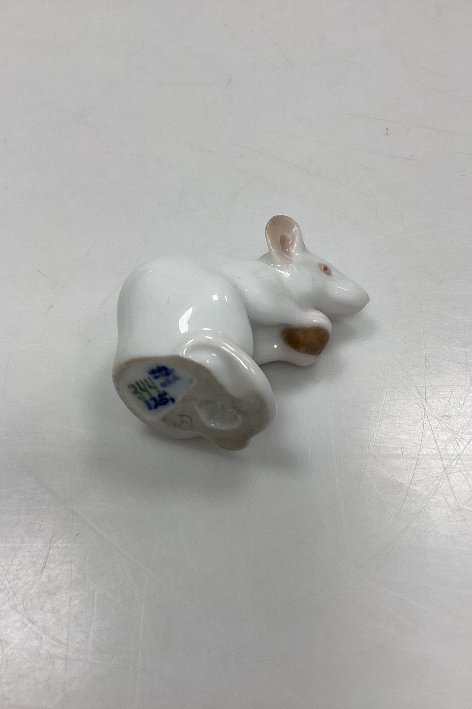 Royal Copenhagen Figur - Mus med Nød No. 344. Designet af A. Pedersen i 1901.Måler 5 cm / 1,97 in. 1. Sortering. Meget veludført reparation på begge ører, se foto.