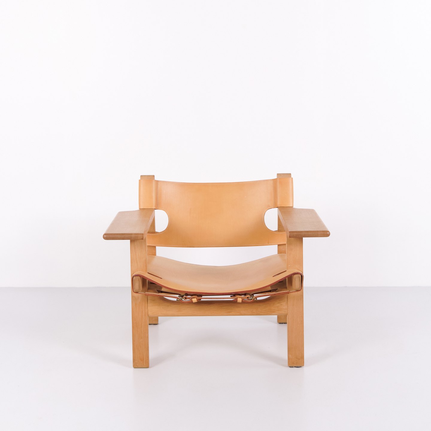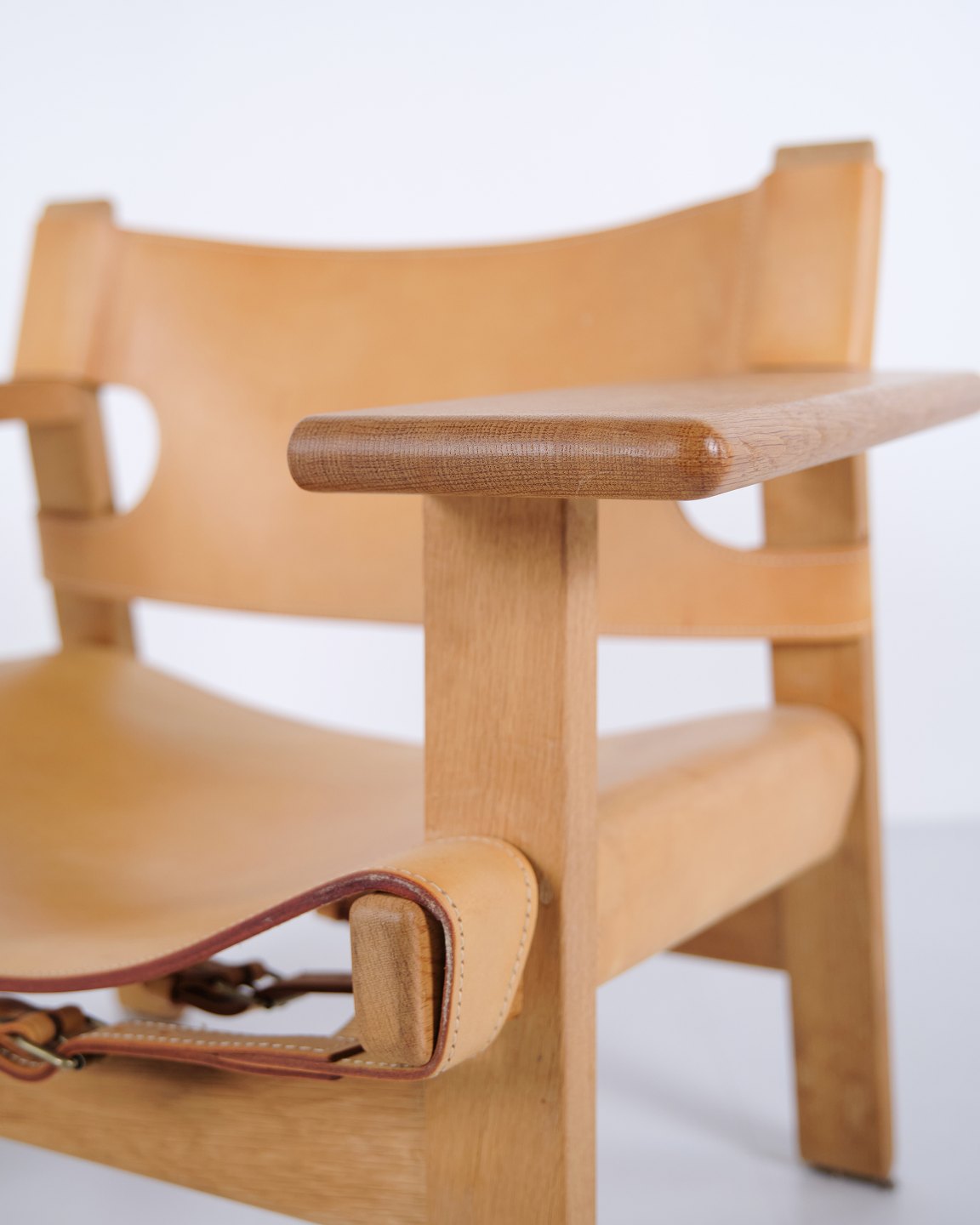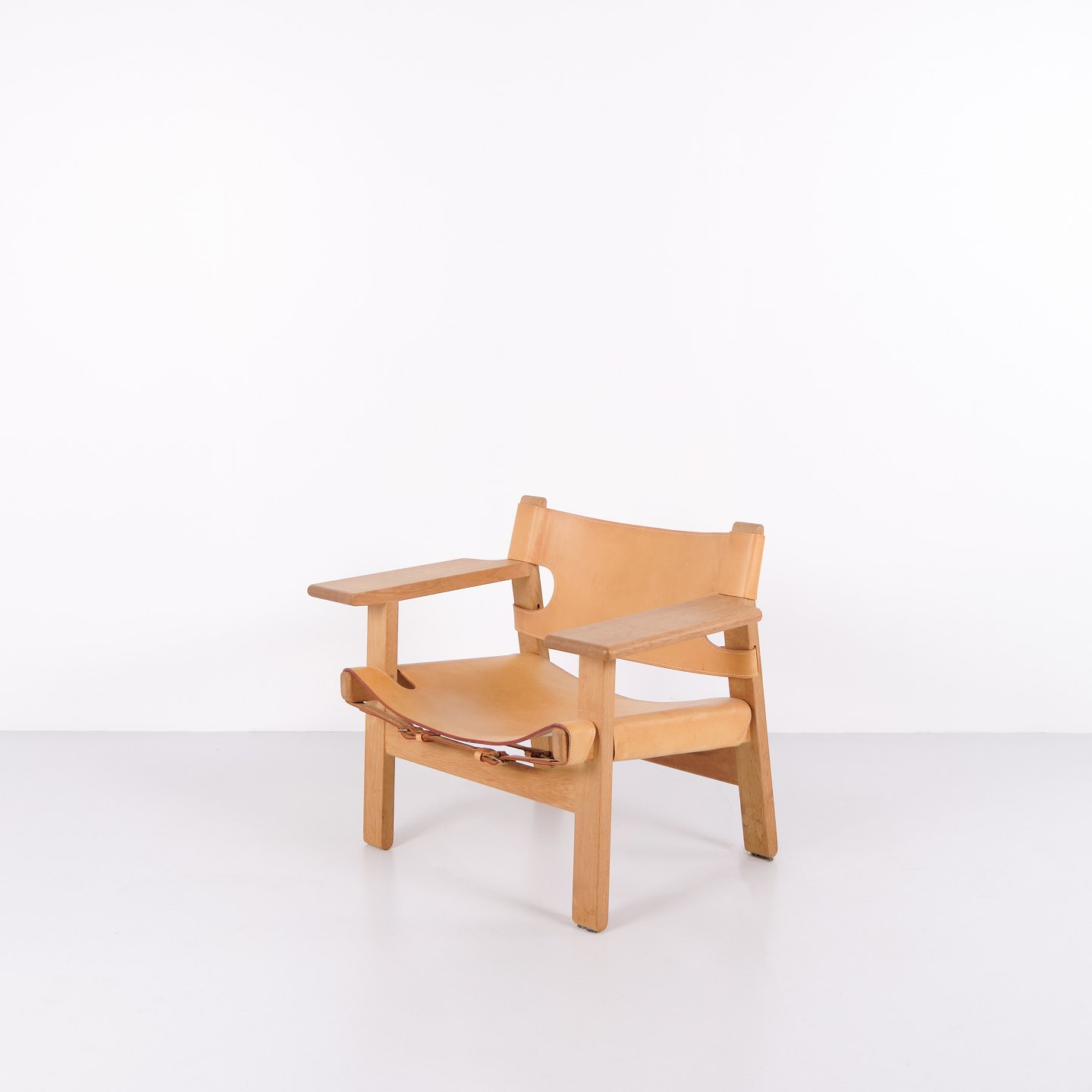 Børge Mogensen Der Spanische Stuhl Modell BM2226 aus natürlich patiniertem Kernleder aus den 1960er Jahren. Klassische dänische Designikone mit robustem Ausdruck.— Herkunft: Dänemark