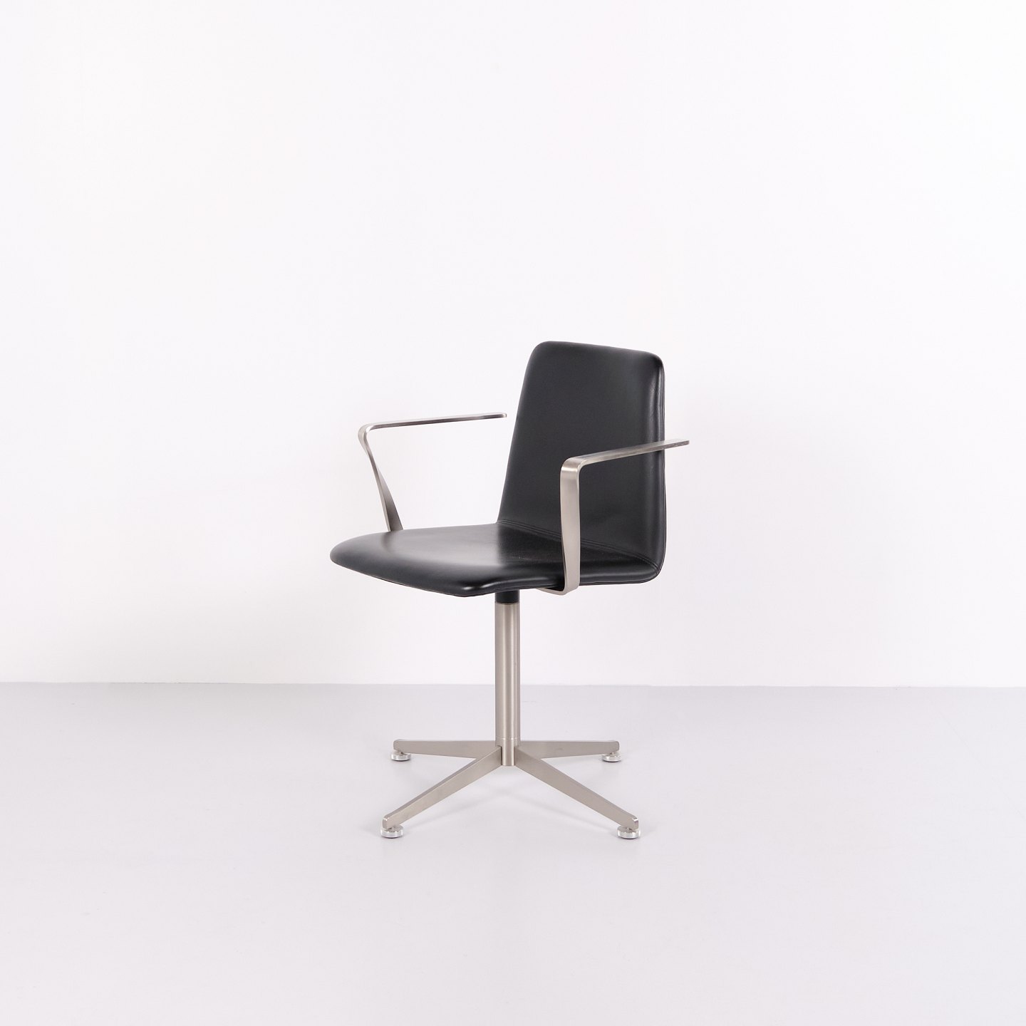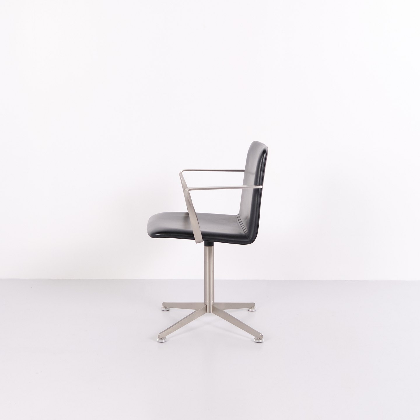 Satz von 6 Paustian Spinal 44 Konferenzstühlen aus schwarzem Leder. Dänisches Design mit modernem und funktionalem Formensprache.— Herkunft: Dänemark