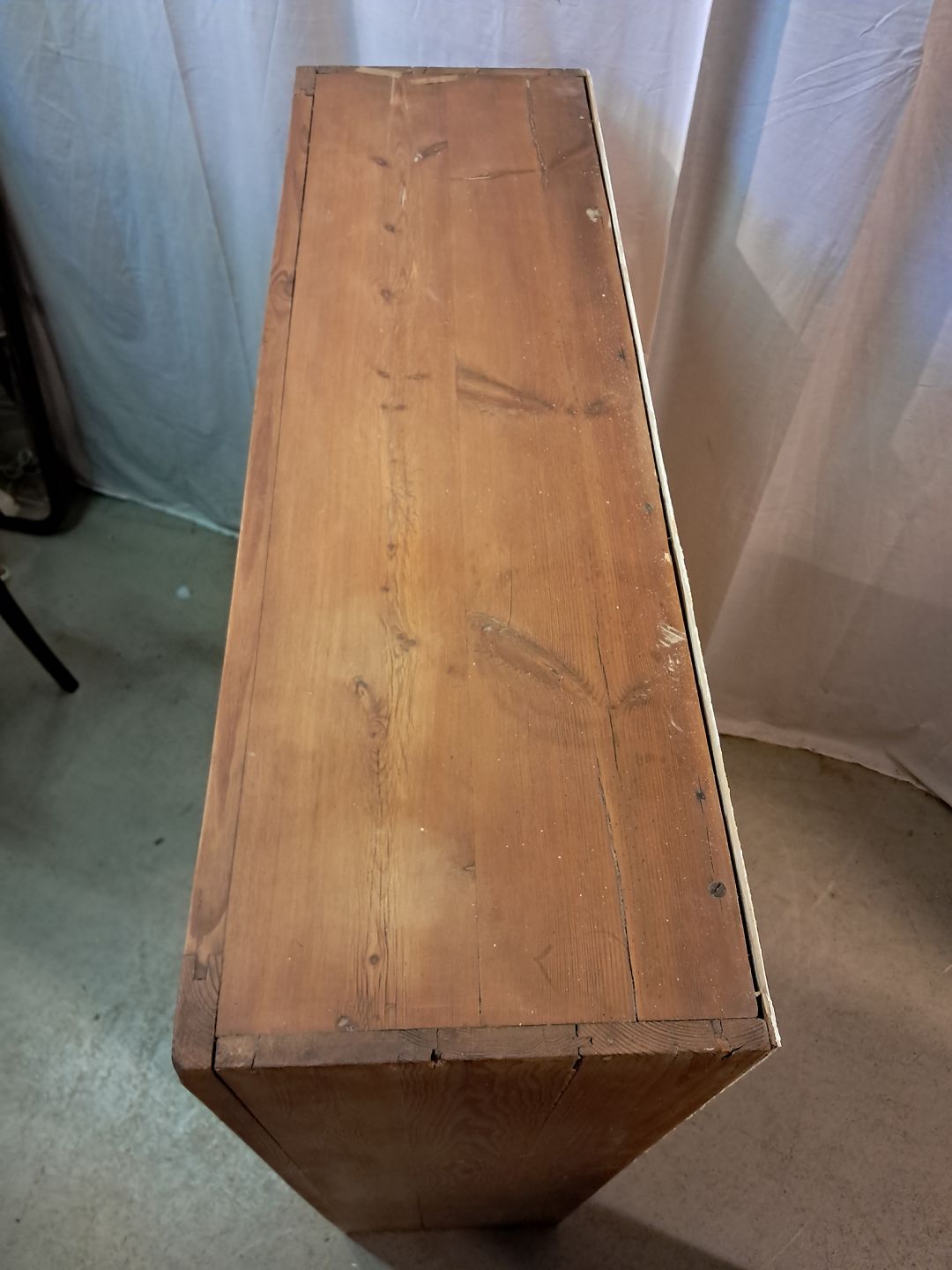 Gammelt køkkenskab i massivt fyrretræ, fra 1920erne.Det har brugsspor.