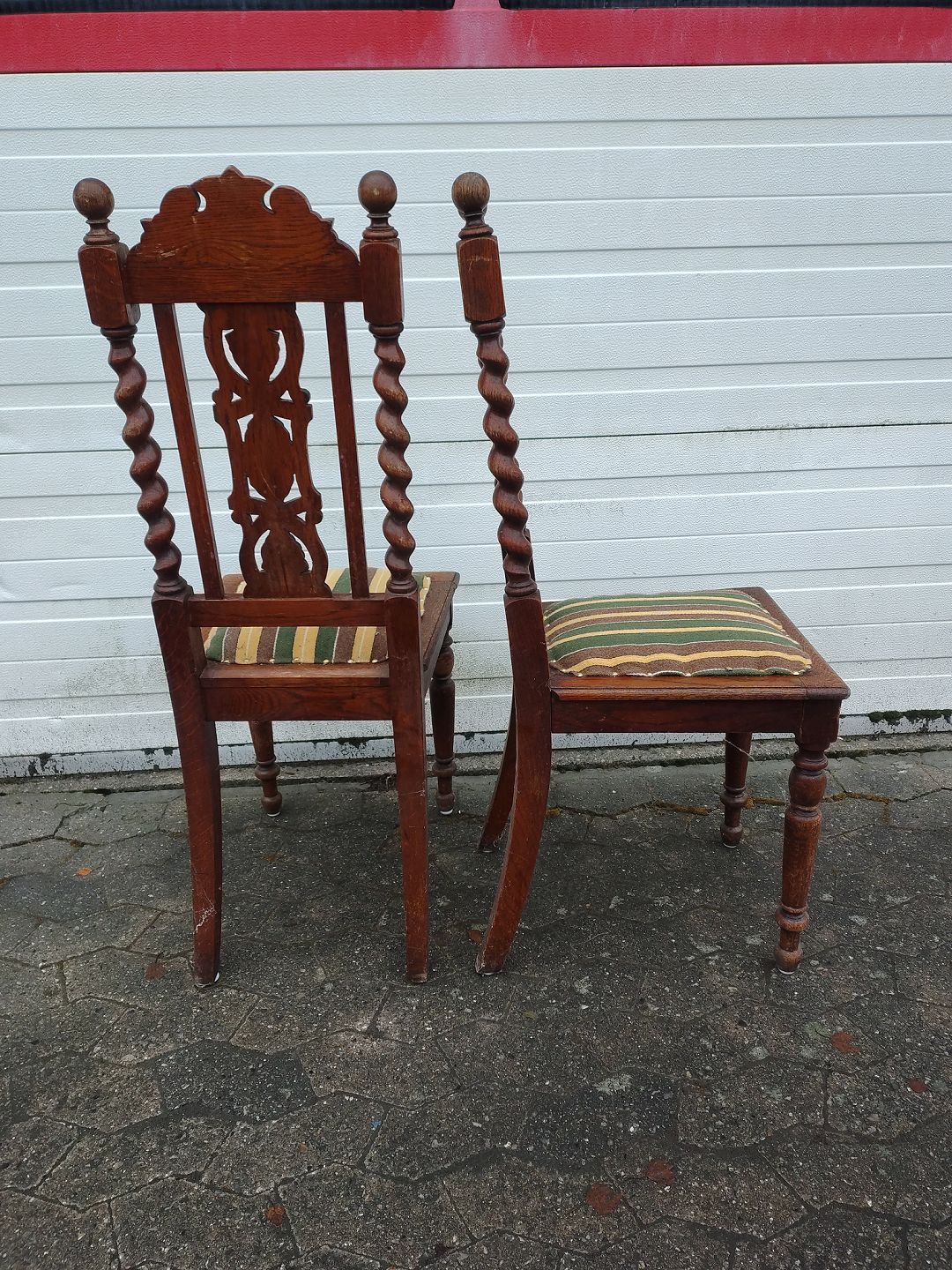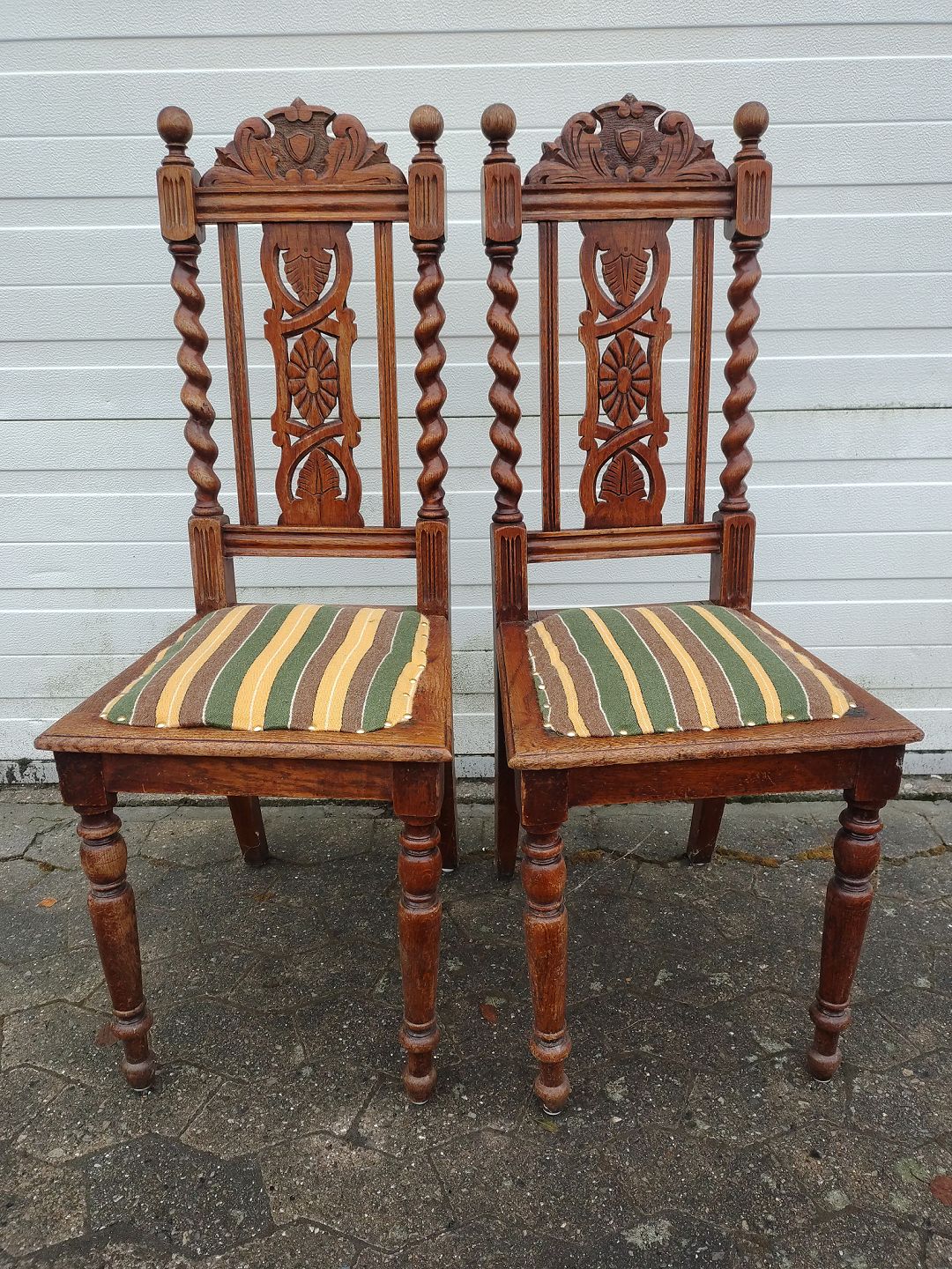 2 Stole i bejdset massivt egetræ, fra 1920erne.De har brugsspor.