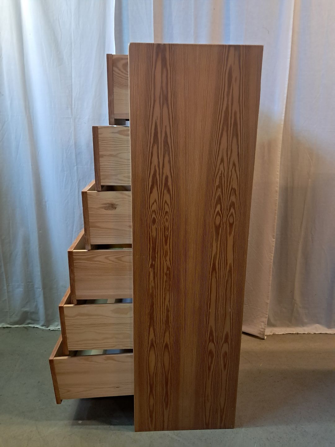 Kommode i fineret fyrretræ, fra 1980erne.Den har brugsspor.