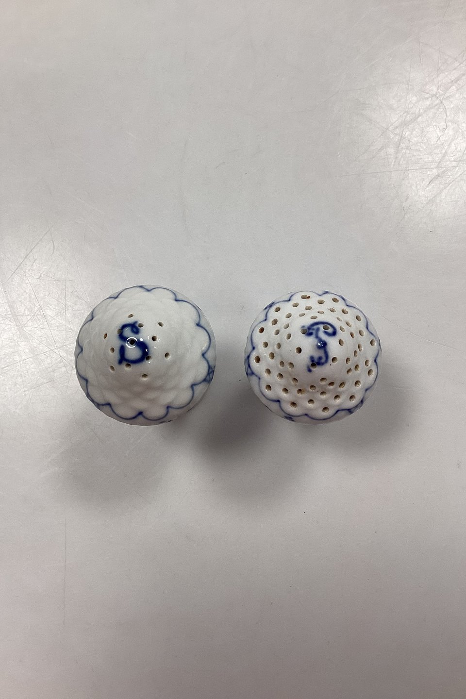 Royal Copenhagen Musselmalet Riflet Salt- og Pebersæt No. 467/480. Uden propper (hørepropper kan anvendes)Måler 8 cm / 3,15 in. 1. Sortering