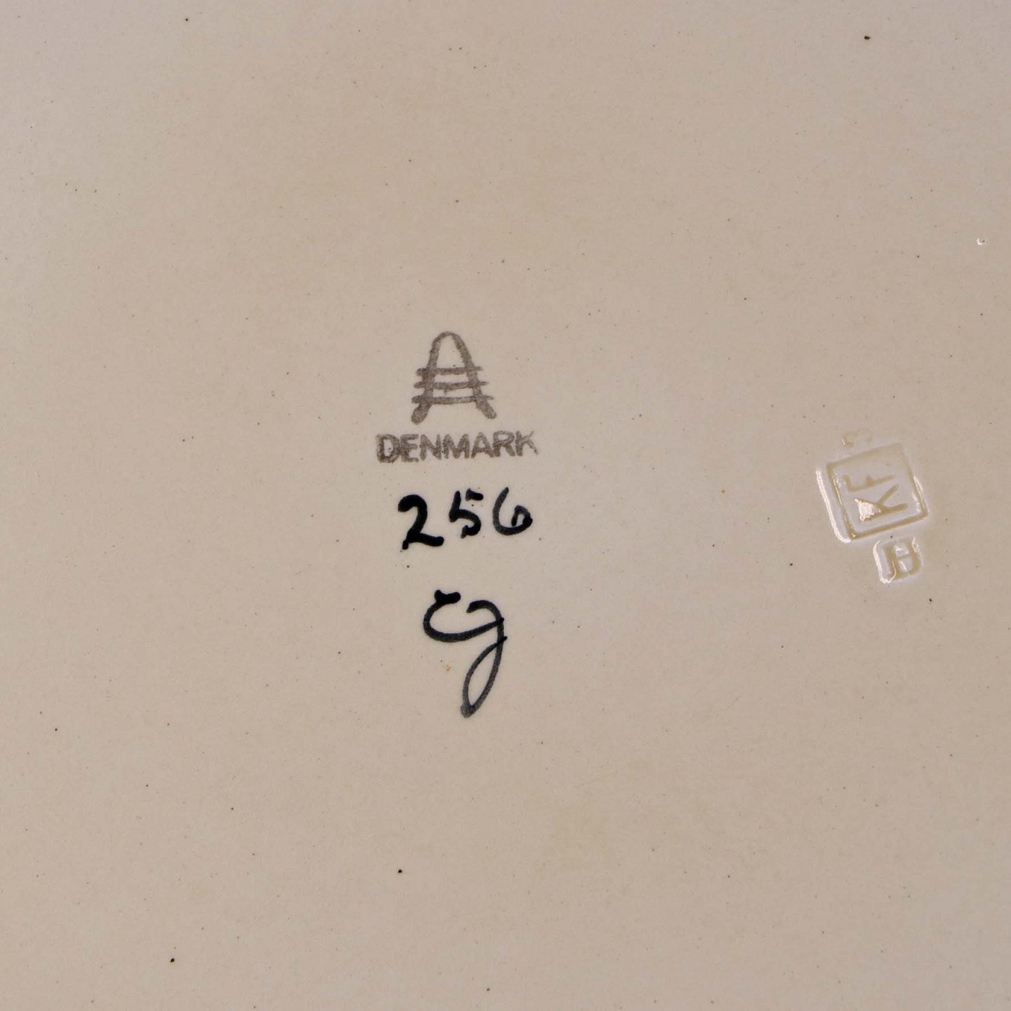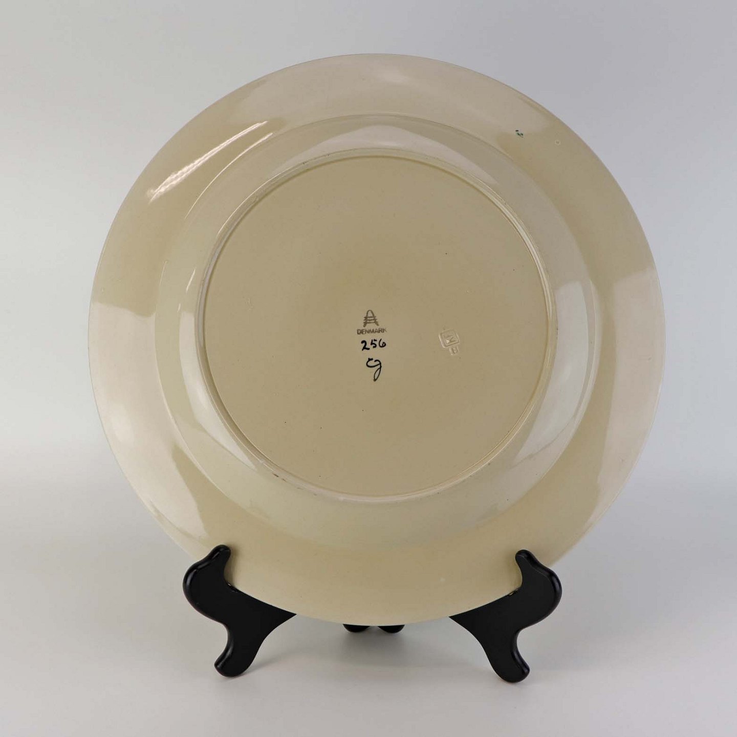 Rundt serveringsfad i fajance fra stellet Dragsholm fremstillet i perioden 1934-1965. Nr 256Formgiver Thorkild Olsen