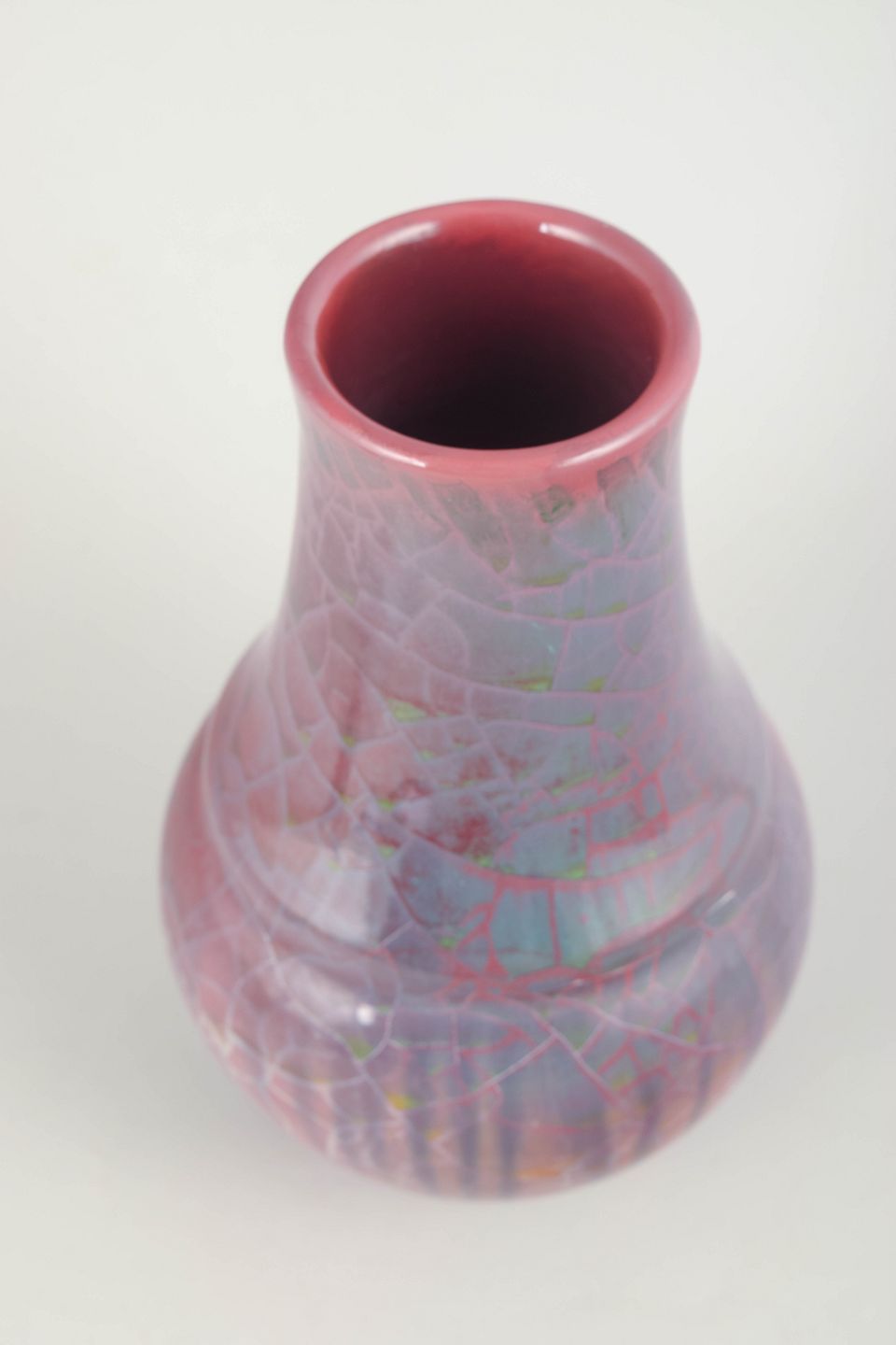 Karl Hansen Reistrup for Kähler, stor vase med lusterglasur.Imponerende balusterformet vase i stentøj med dyb rosa og violet lusterglasur samt dekorativ krakelering, udført i Kählers karakteristiske kunstneriske stil fra slutningen af 1800-tallet.
