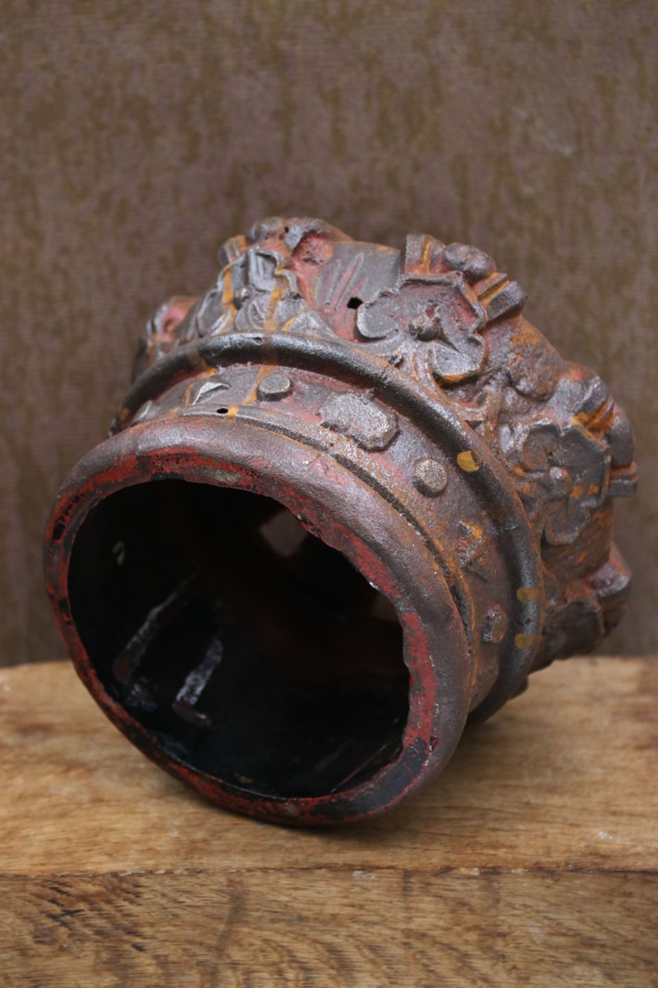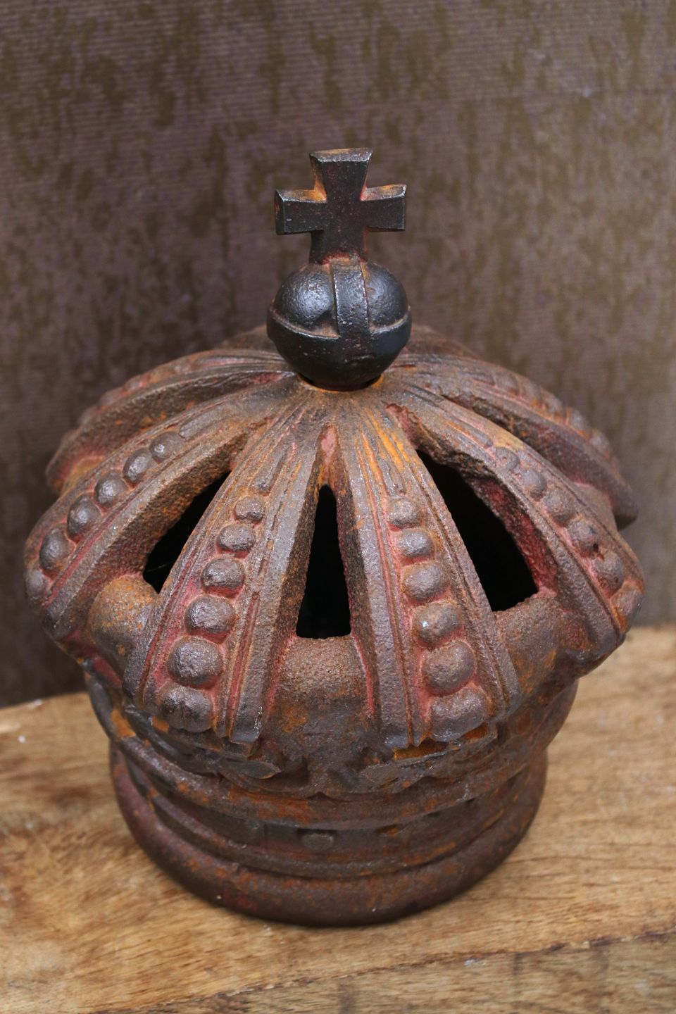 Dekorativ , gammel " Kongekrone " i støbejern med en rigtig fin patina.H: 22cm. Dia.: 20cm. Vægt: 5,5kg.