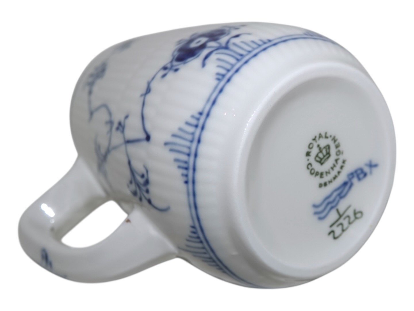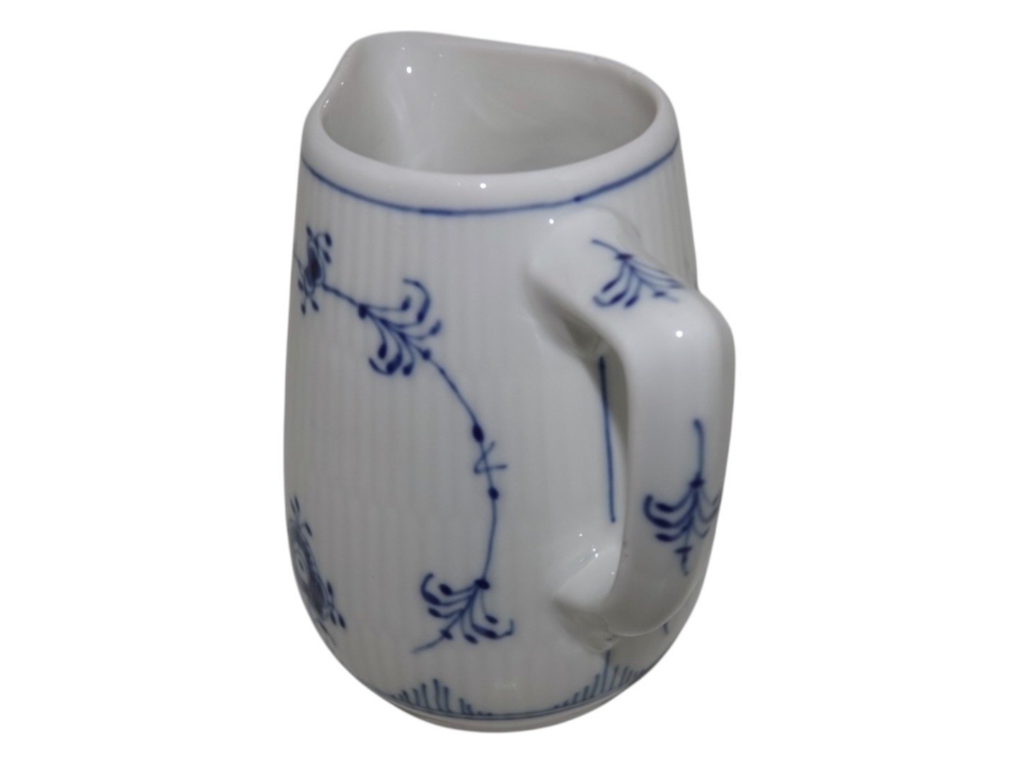 Royal Copenhagen Musselmalet Riflet i tykt jernporcelæn, flødekande.Af fabriksmærket kan det udledes, at denne er produceret i mellem 1969 og 1974.