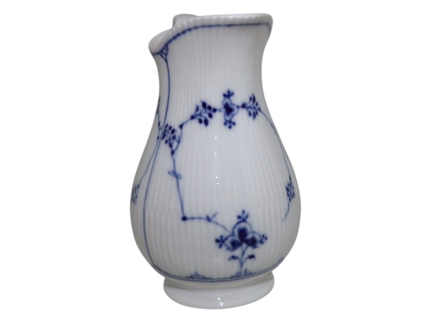 Royal Copenhagen Musselmalet Riflet, sjælden flødekande.Af fabriksmærket ses det, at denne er produceret mellem 1898 og 1923.