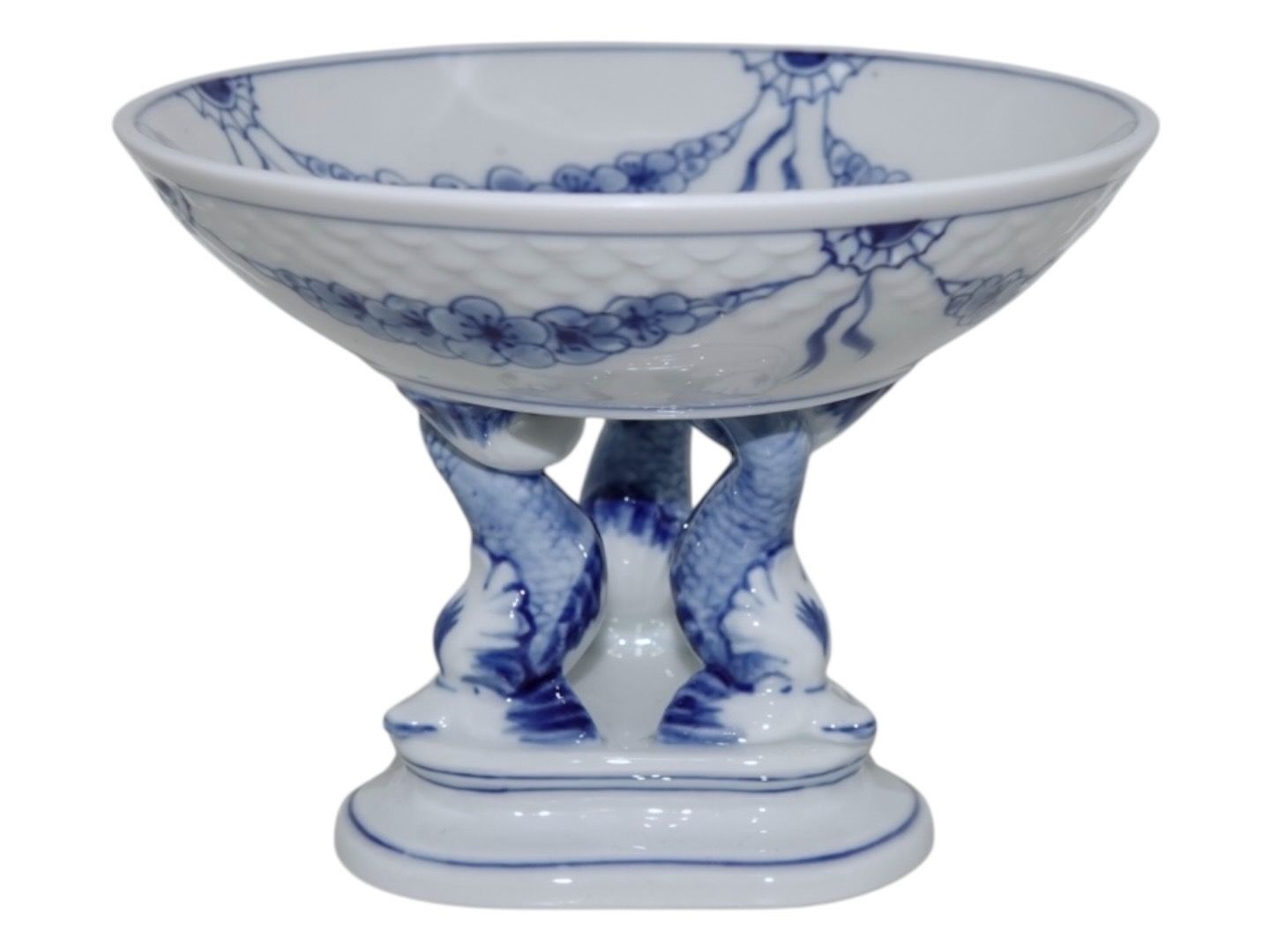 Bing & Grondahl Empire, Candy bowl on feet held by dolphins.The factory mark tells, that this was produced between 1962 and 1970.