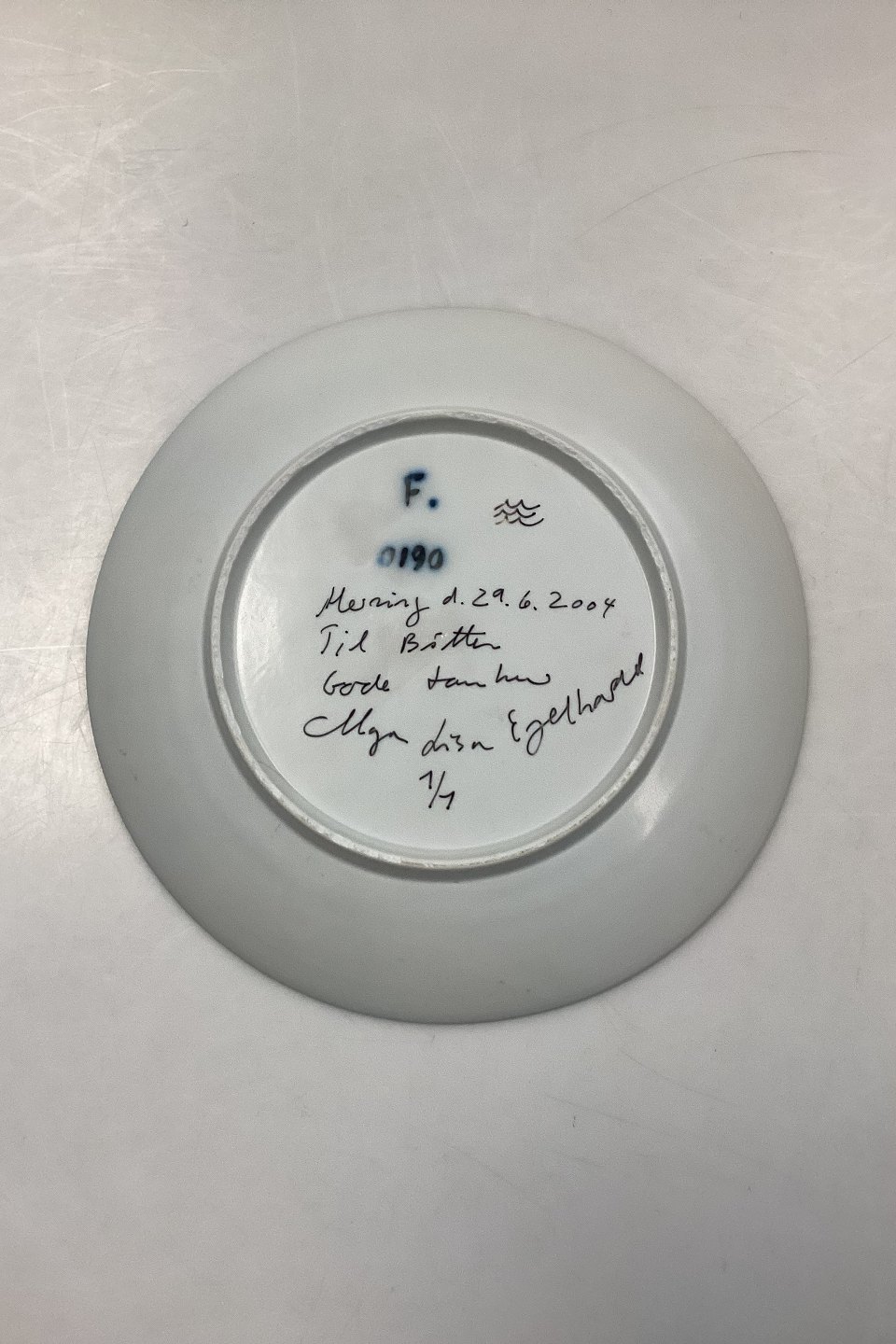 Royal Copenhagen Unika Kunstnerfad 2004 af Maja Lisa Engelhardt. Inskription: Herning d. 29.6.2004 - Til Bitten Gode tanker. Signeret Maja Lisa Engelhardt 1/1.