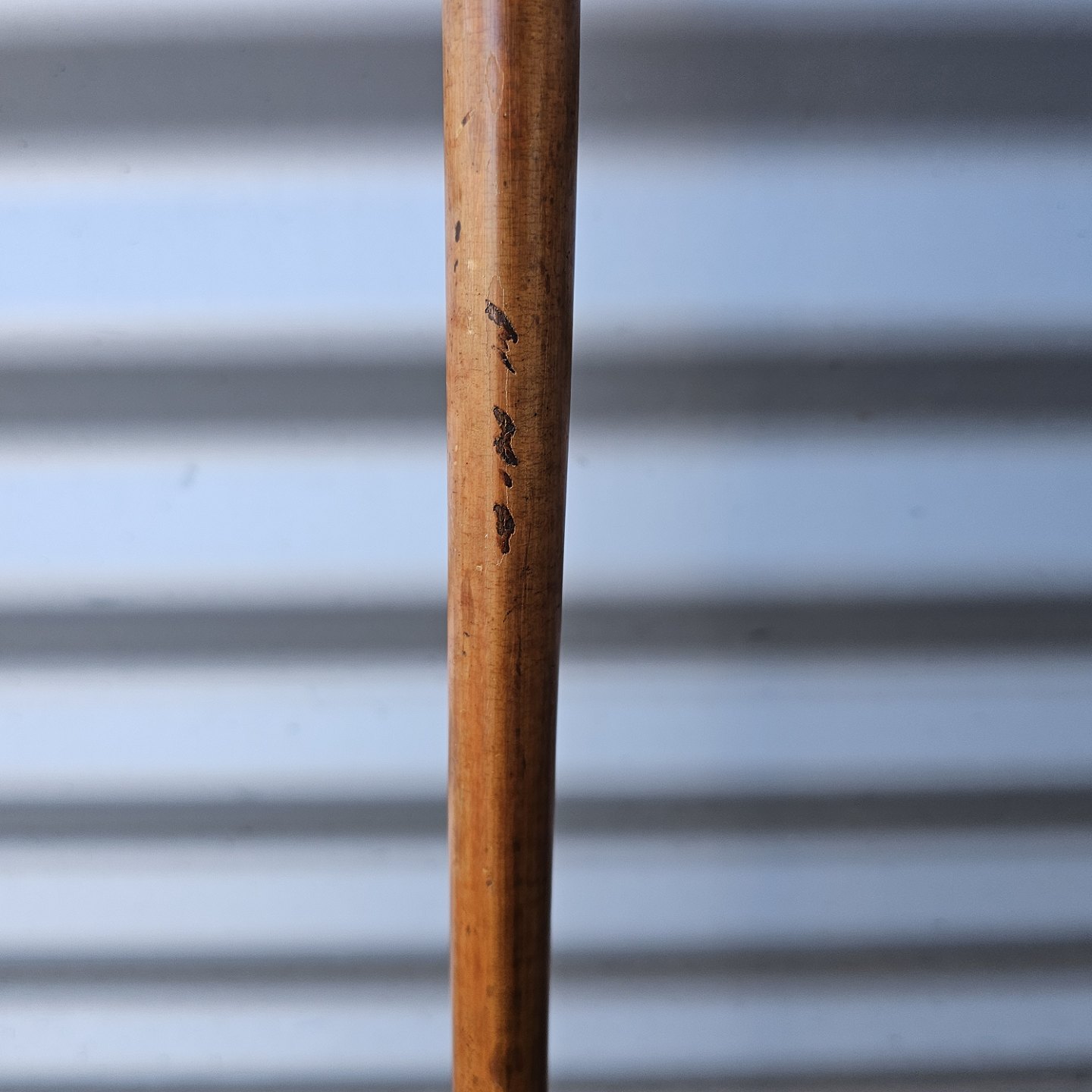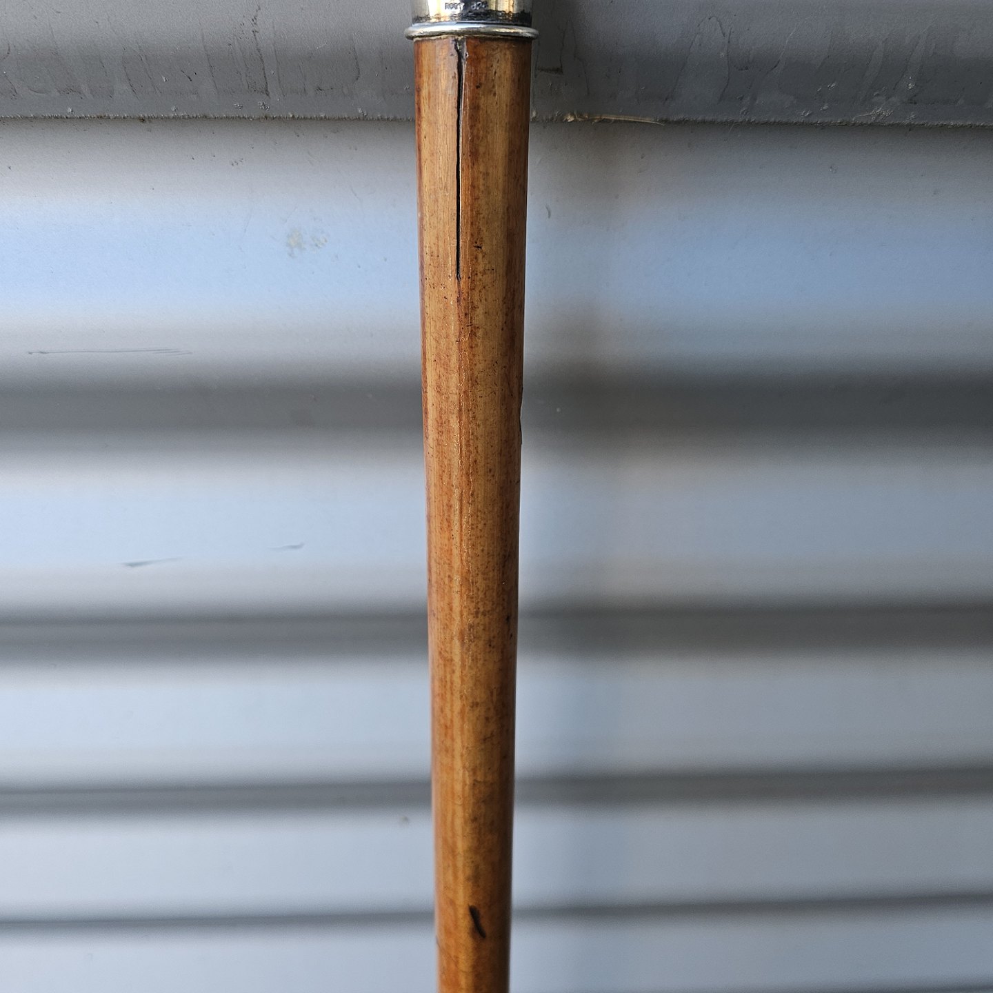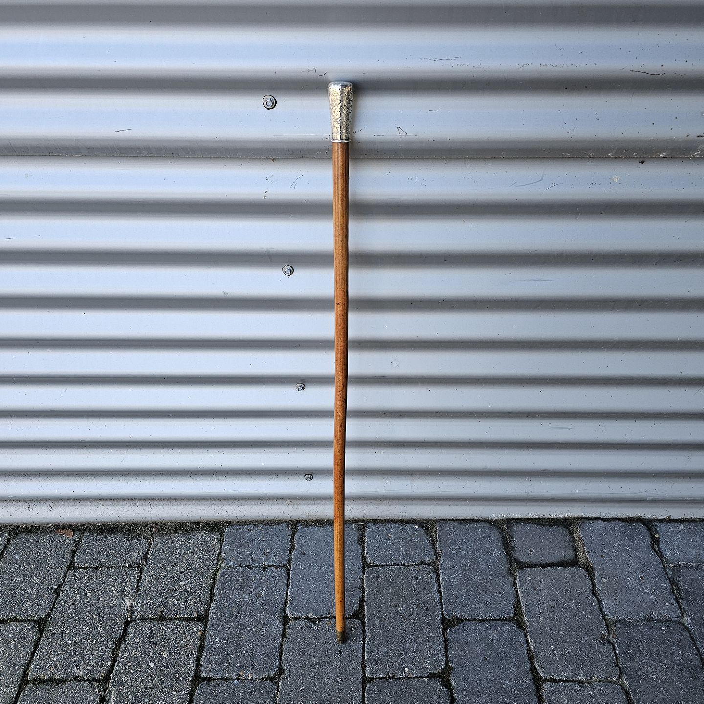 Stok i træ med knop af sølv, 826S Indgraveret KM og Rost