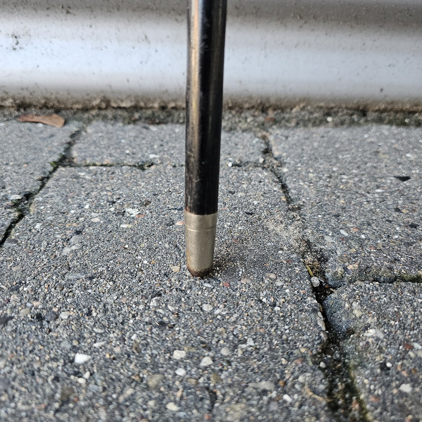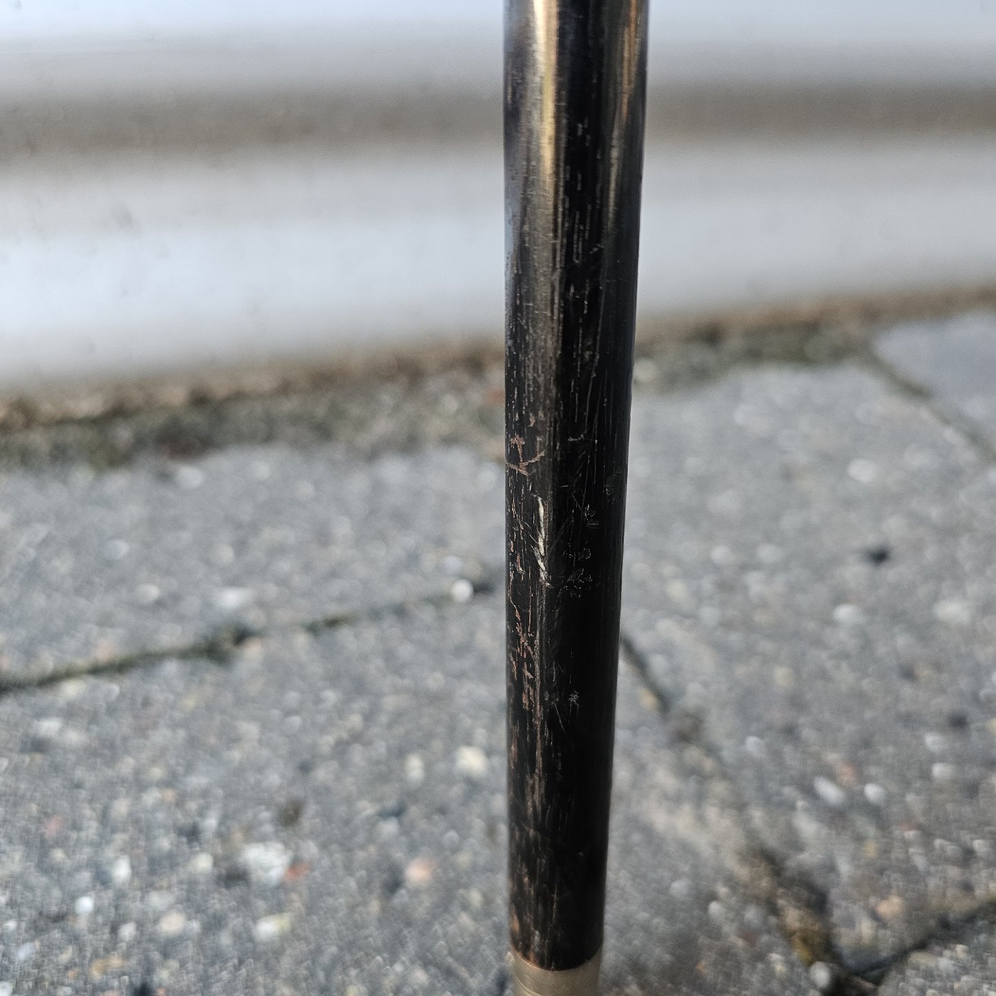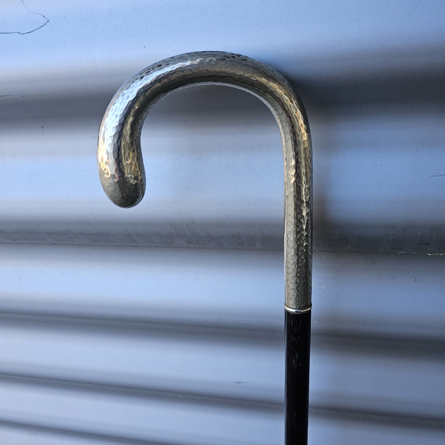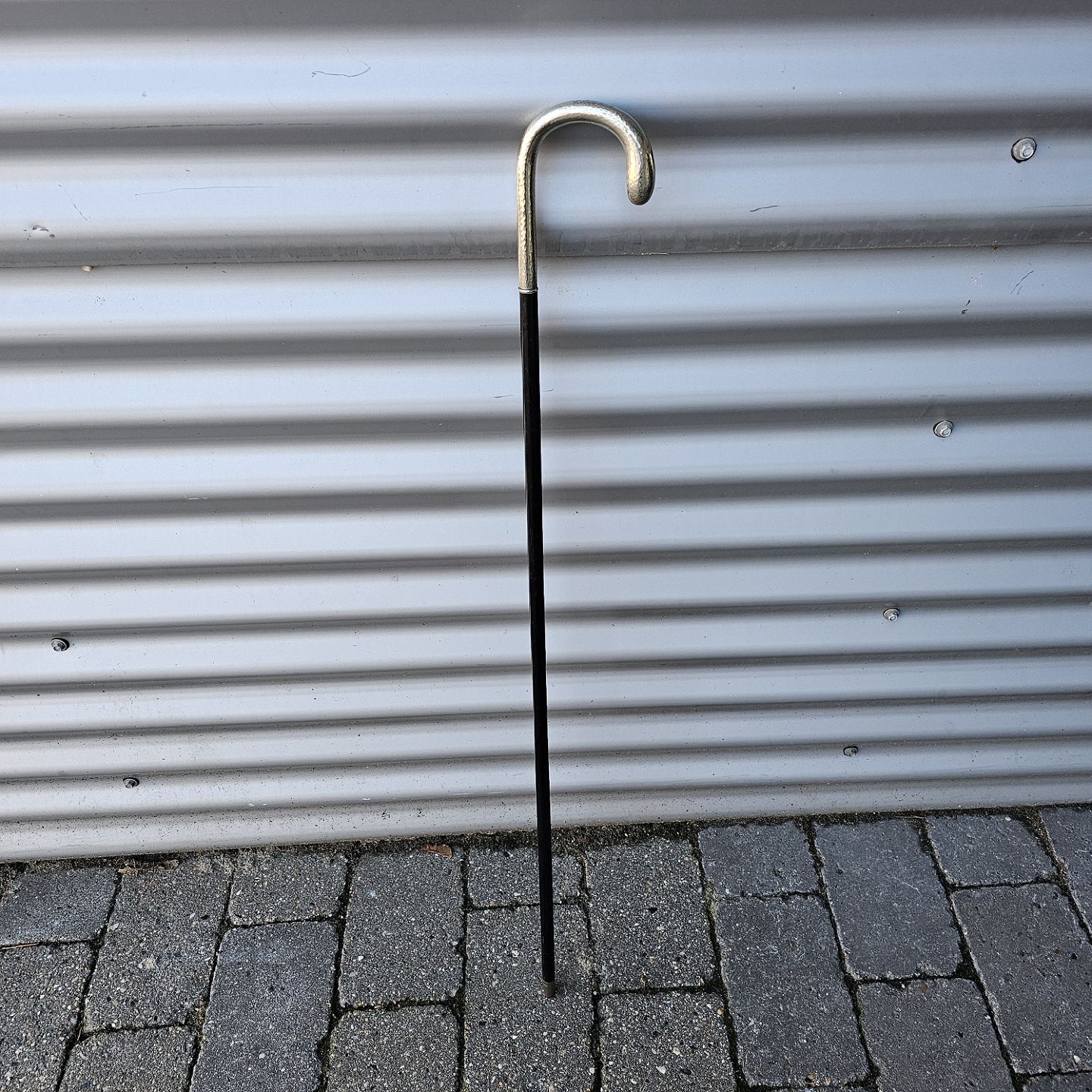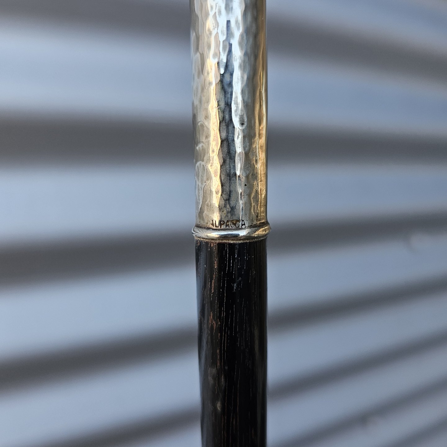 Stok i lakeret træ med buet håndtagStemplet Alpacca