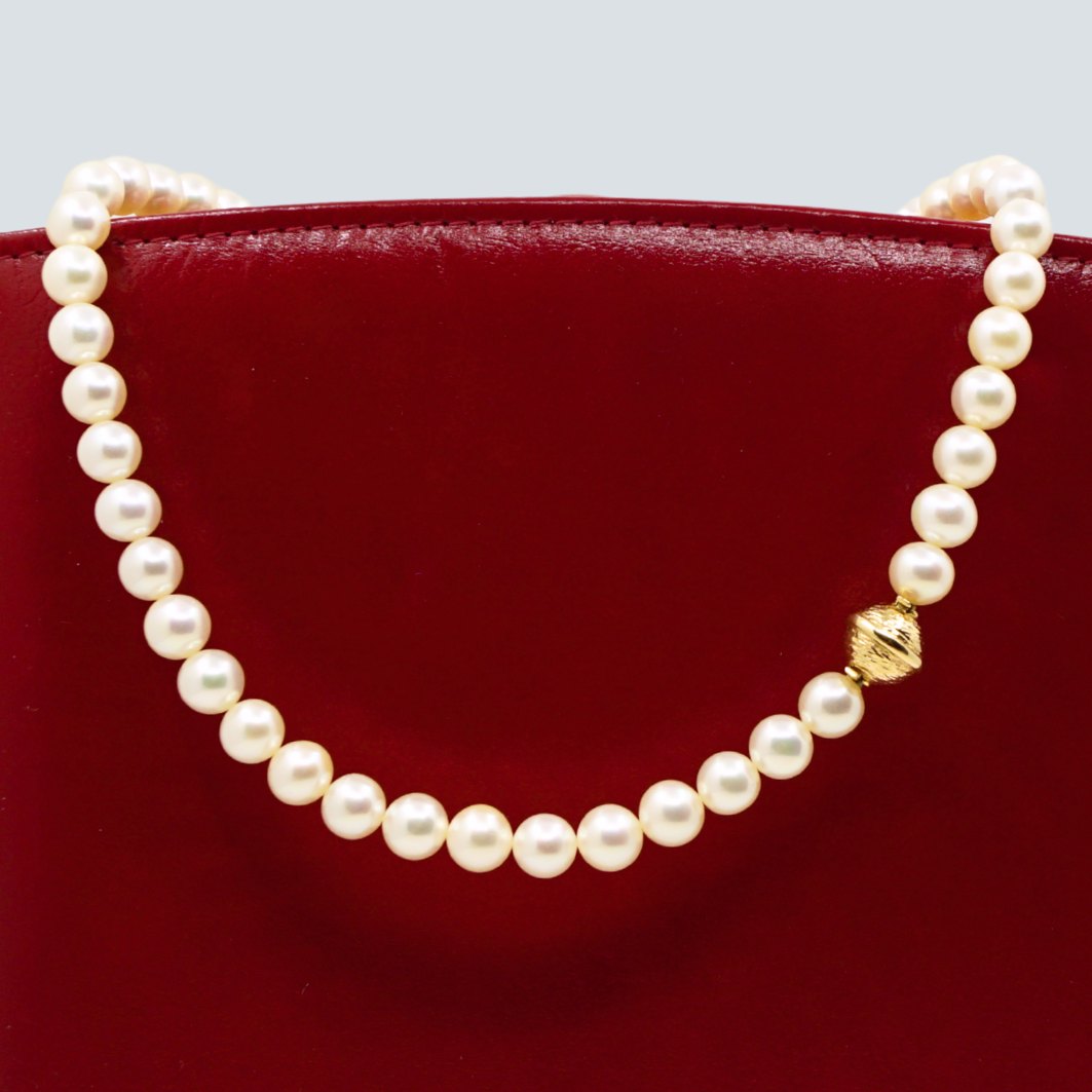 Per Borup; Kuglelås i 14 kt. guld, inklusiv perlekæde