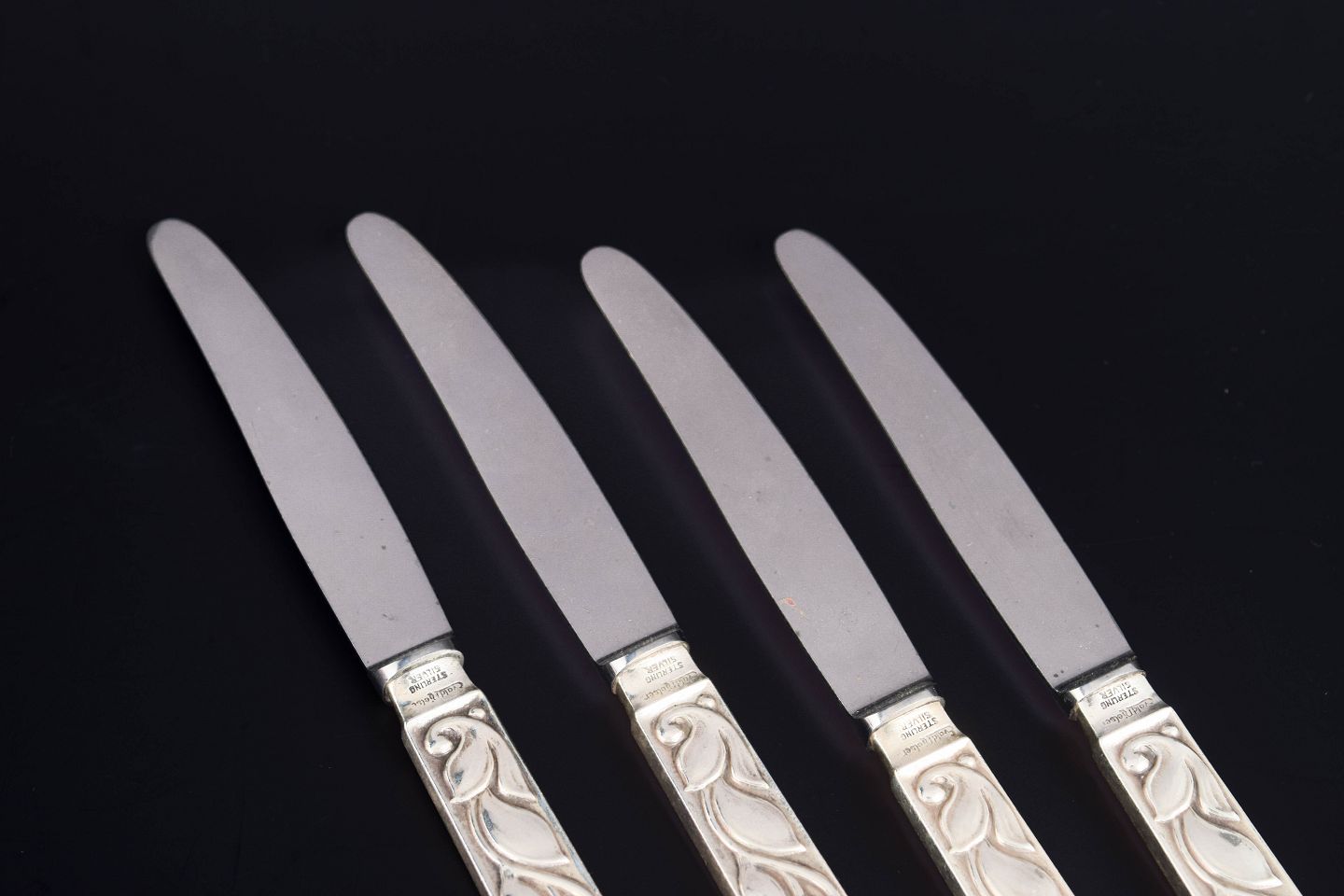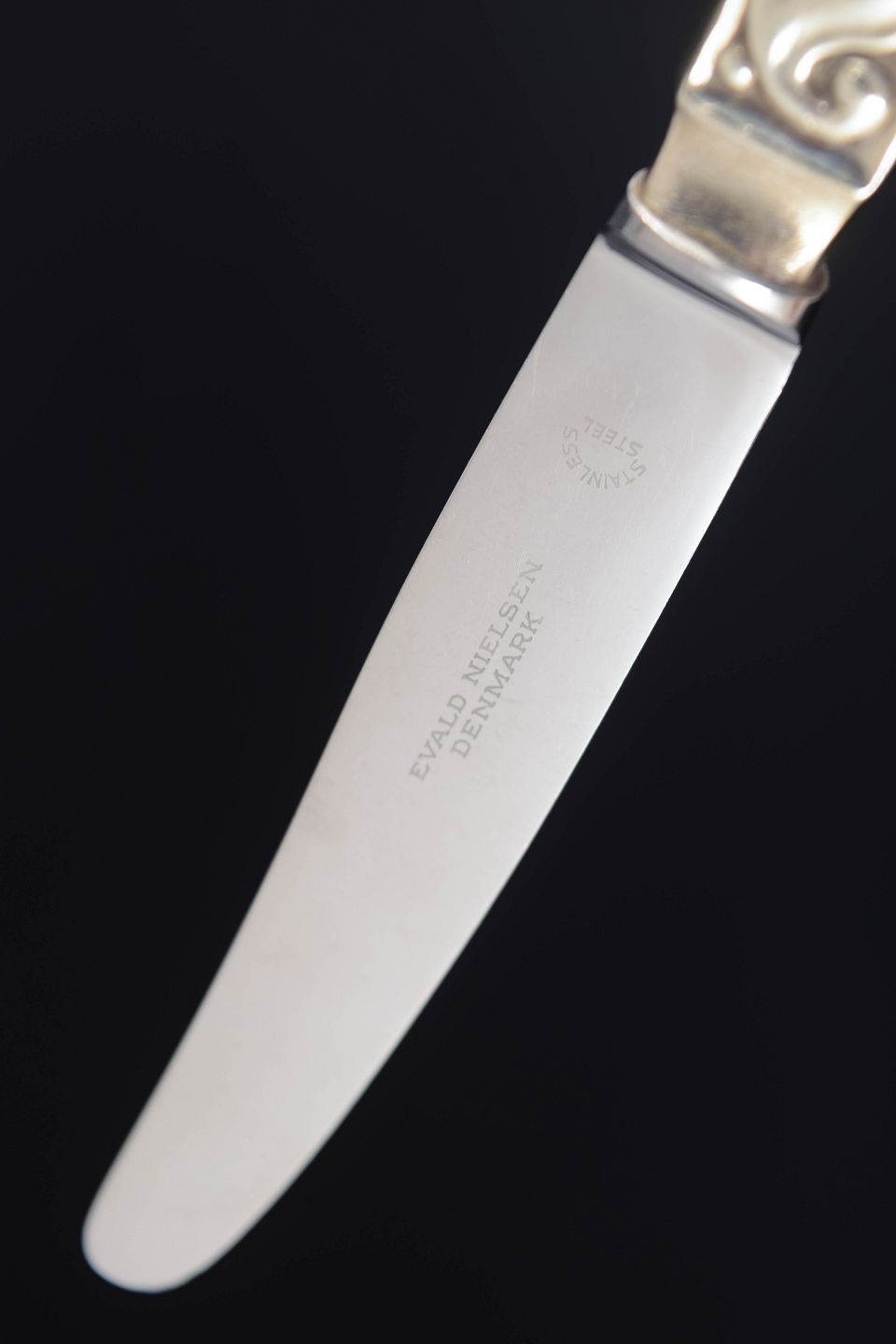 Elegante frugtknive i sterlingsølv og rustfrit stål med klassisk, let afrundet skaftform og glat klinge. Fremstillet hos Evald Nielsen.