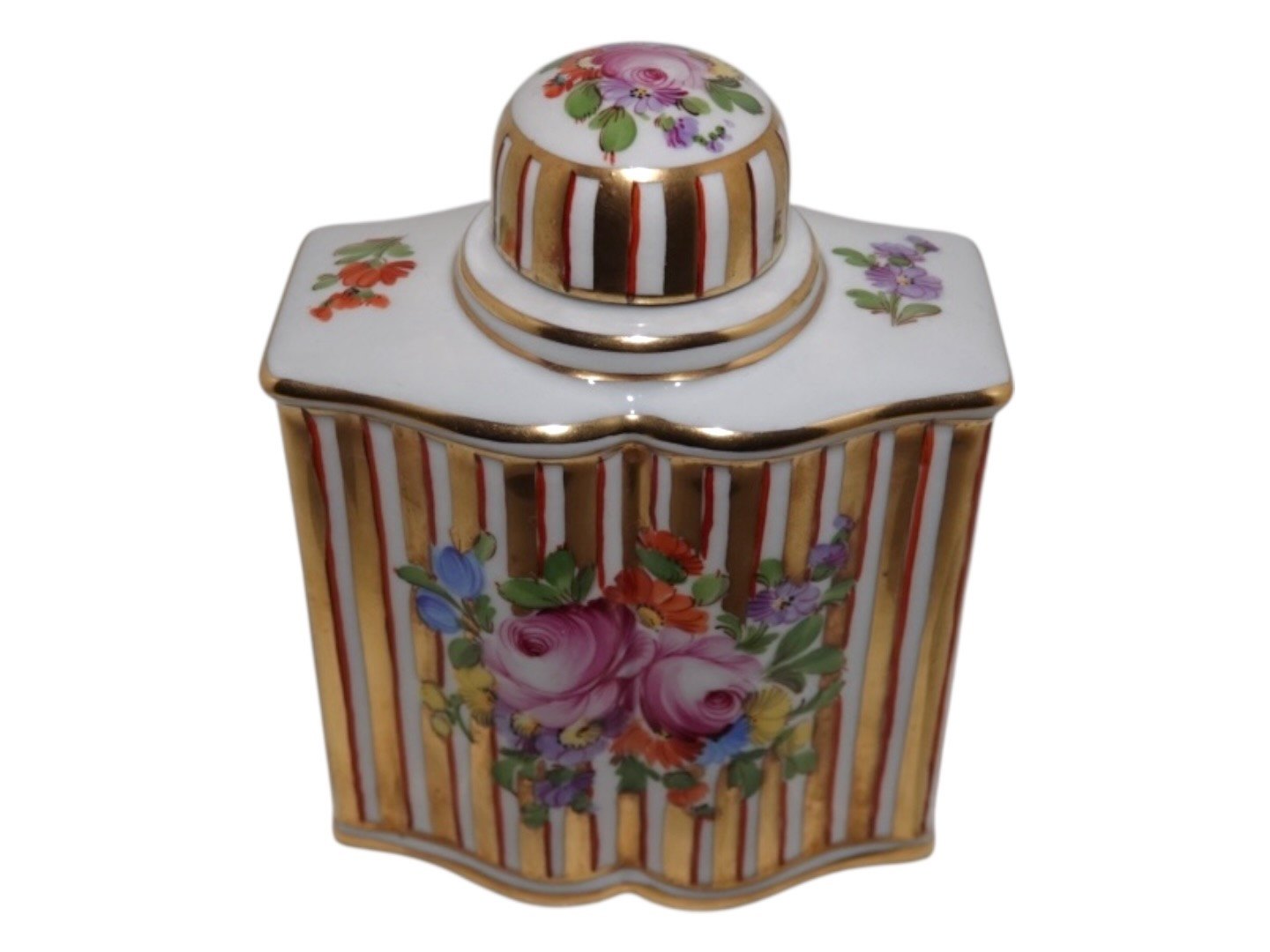 Dresden porcelæn, tedåse med Saksisk Blomst dekoration.