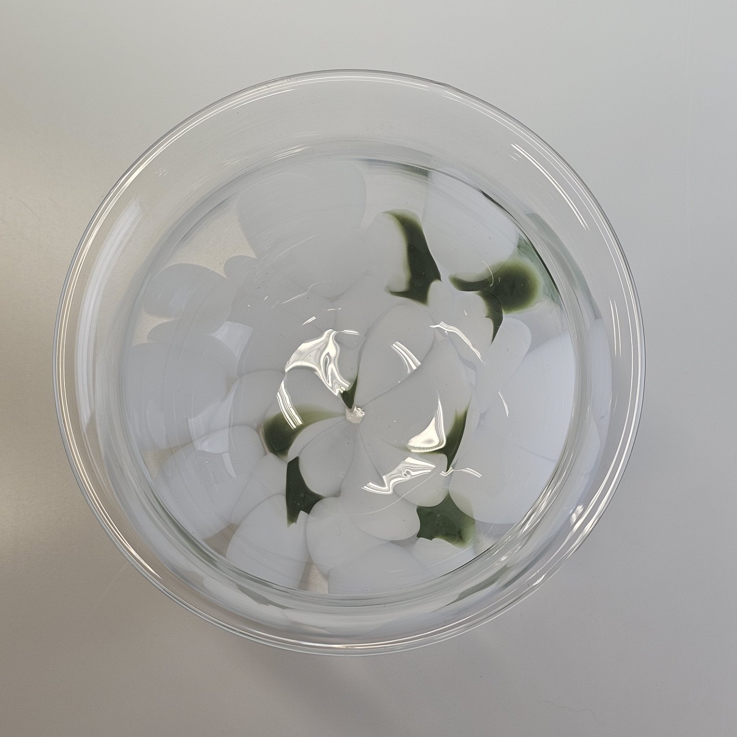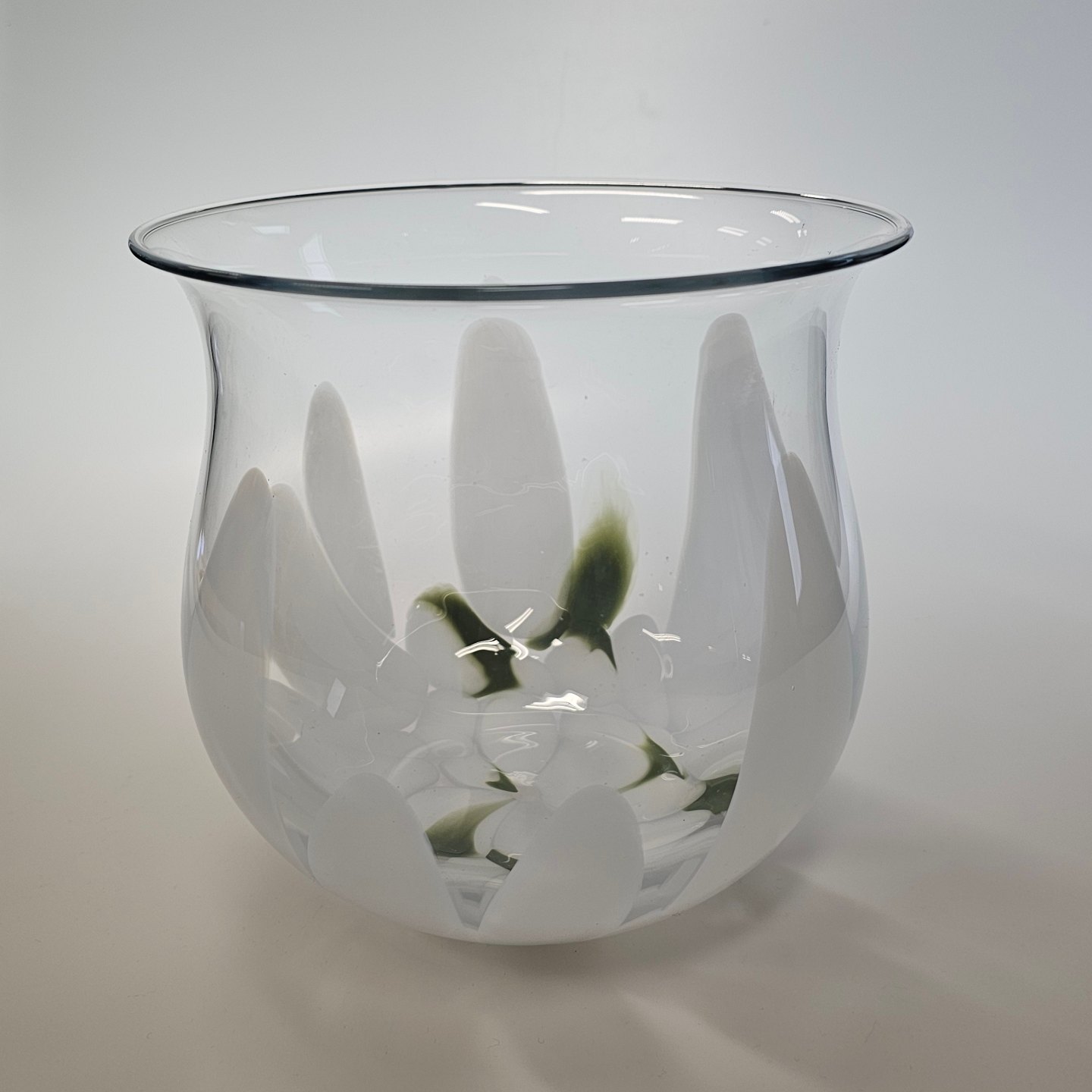 Vase i glas med hvid dekoration, model VintergækFormgiver Per Lütken