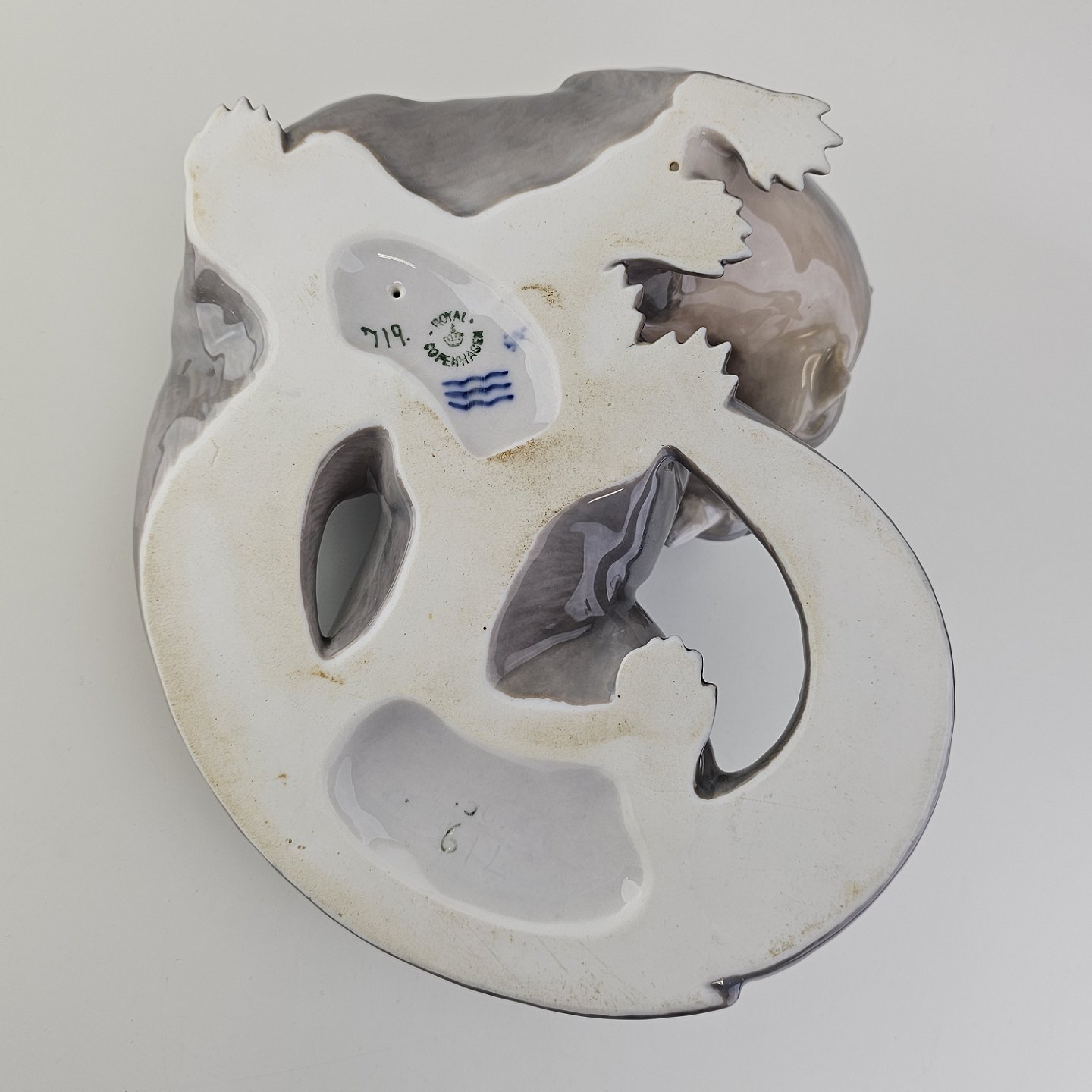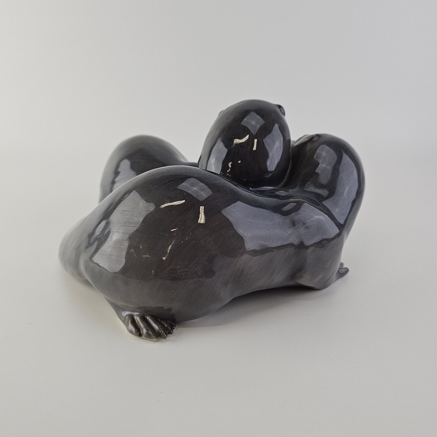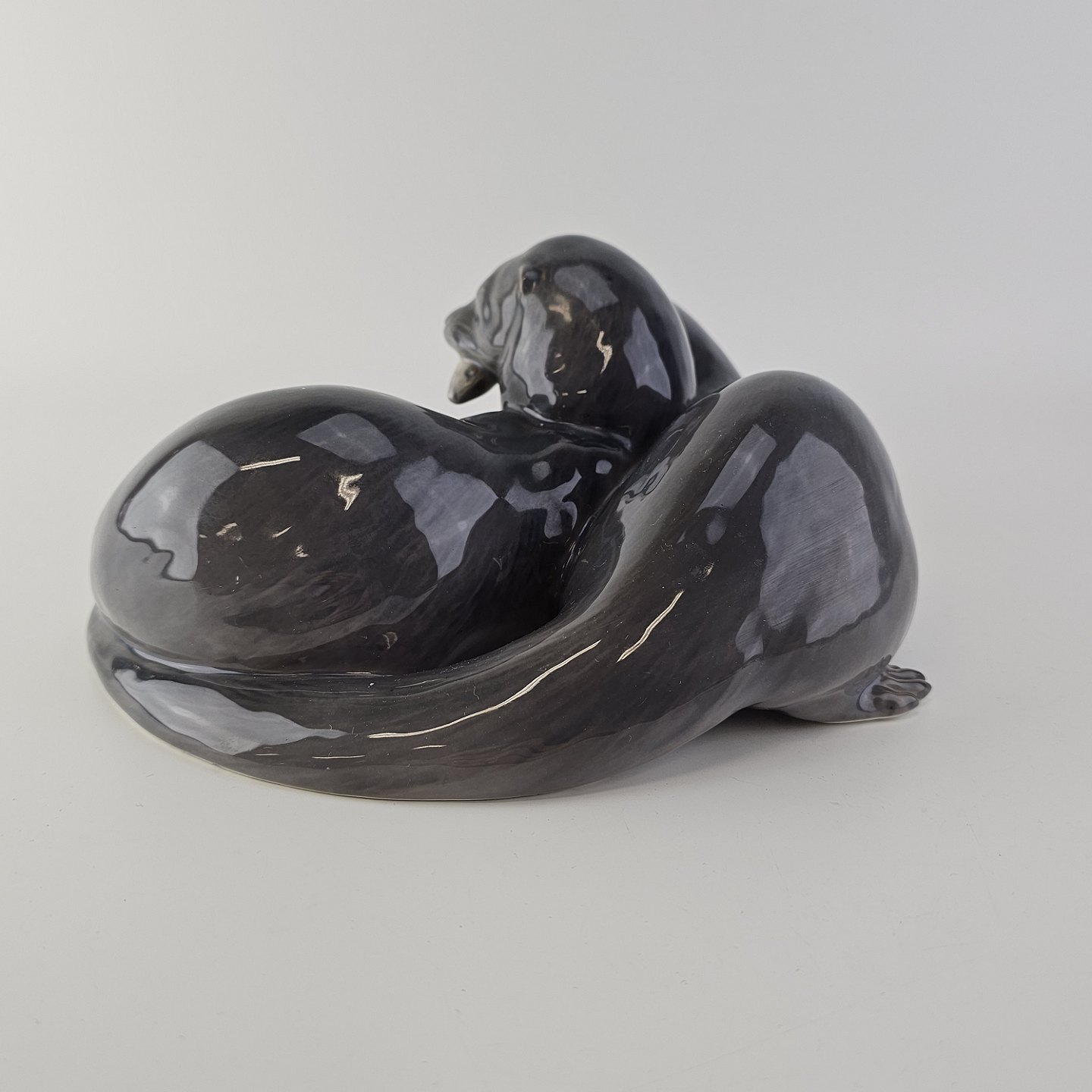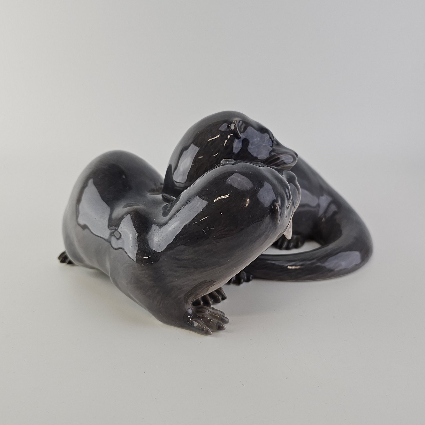 Sjælden figur i kongeligt porcelæn med motiv af to oddere og en fisk