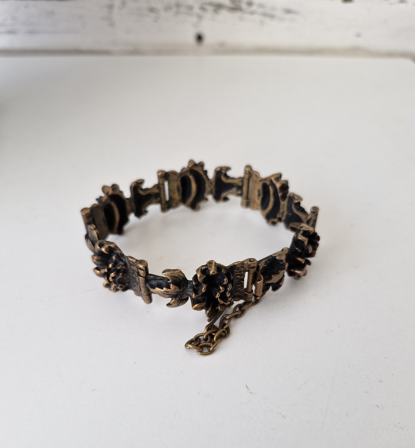 Vintage bronze armbånd hvert led er udført som krysantemum Stemplet: Pentti Sarpaneva - Findland - Bronze