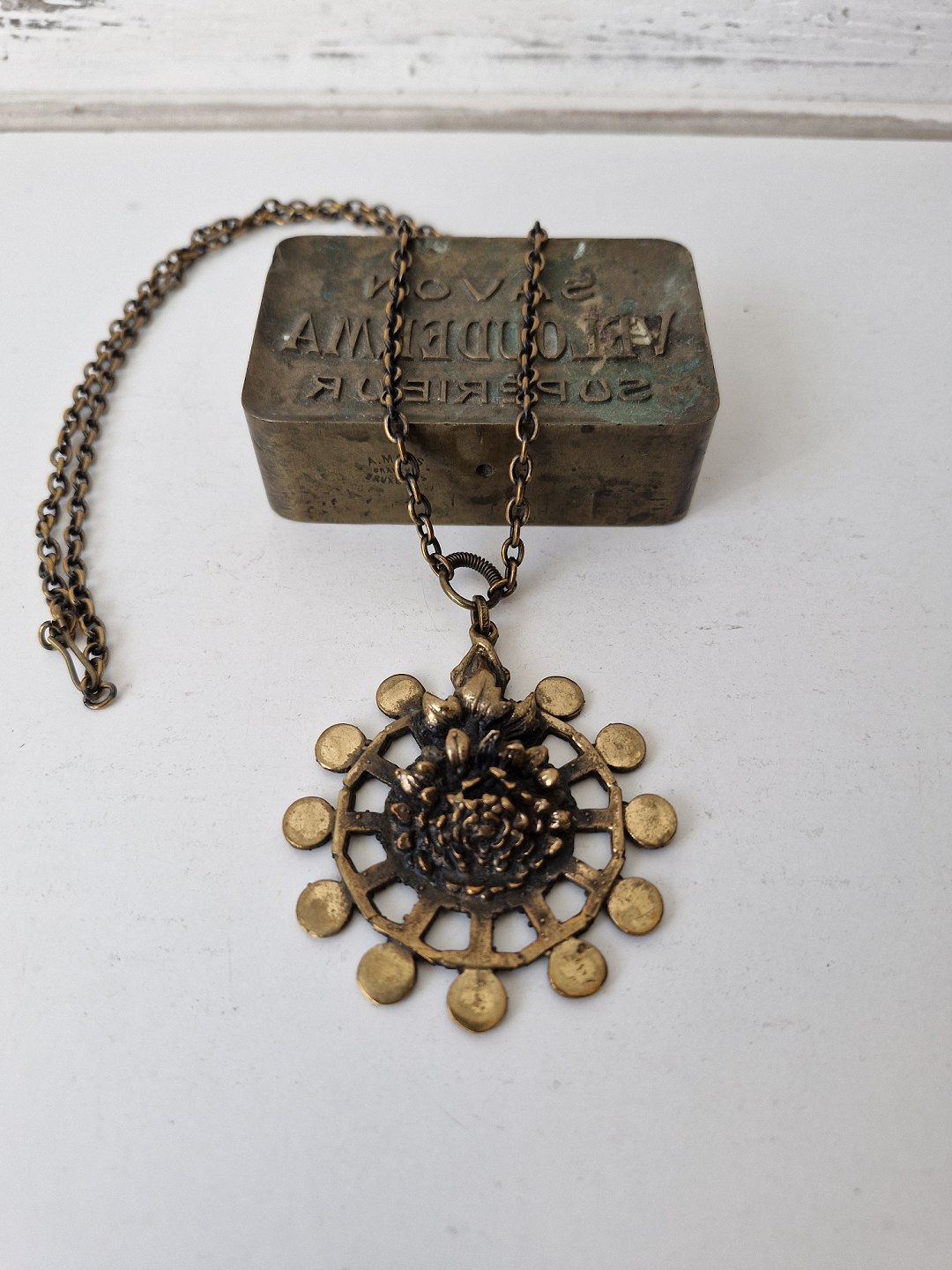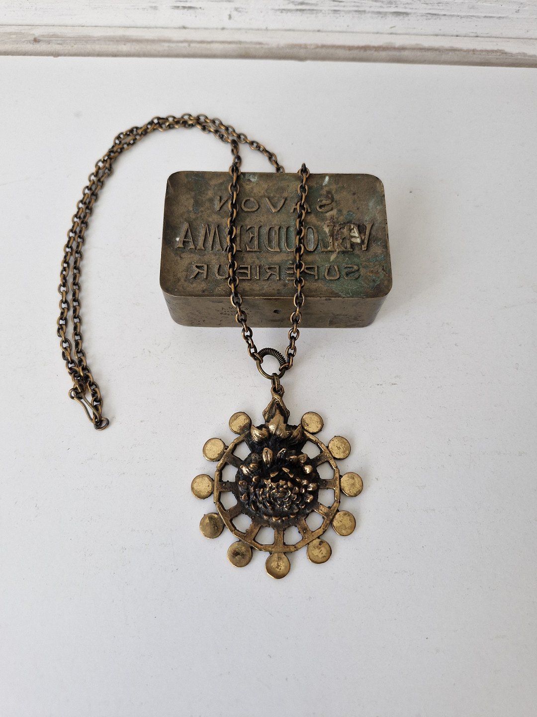 Vintage bronze halssmykke, vedhænget er udført som krysantemum Pentti Sarpaneva - Findland