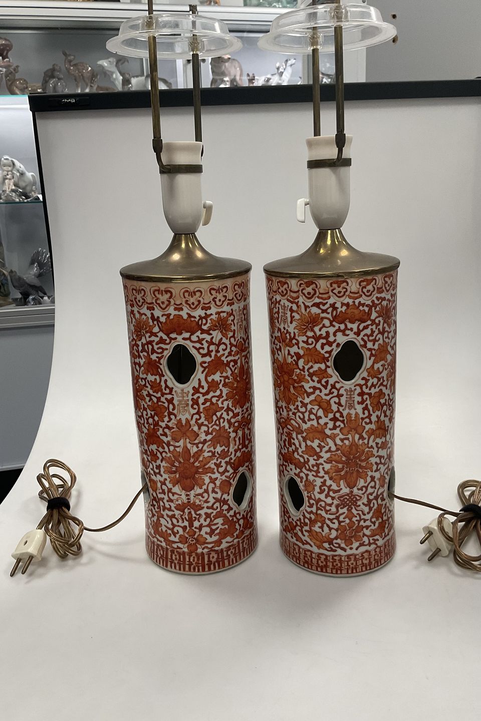 Kinesisk Orientalske Par Lamper af Vaser Jern Rød decoration Qianlong