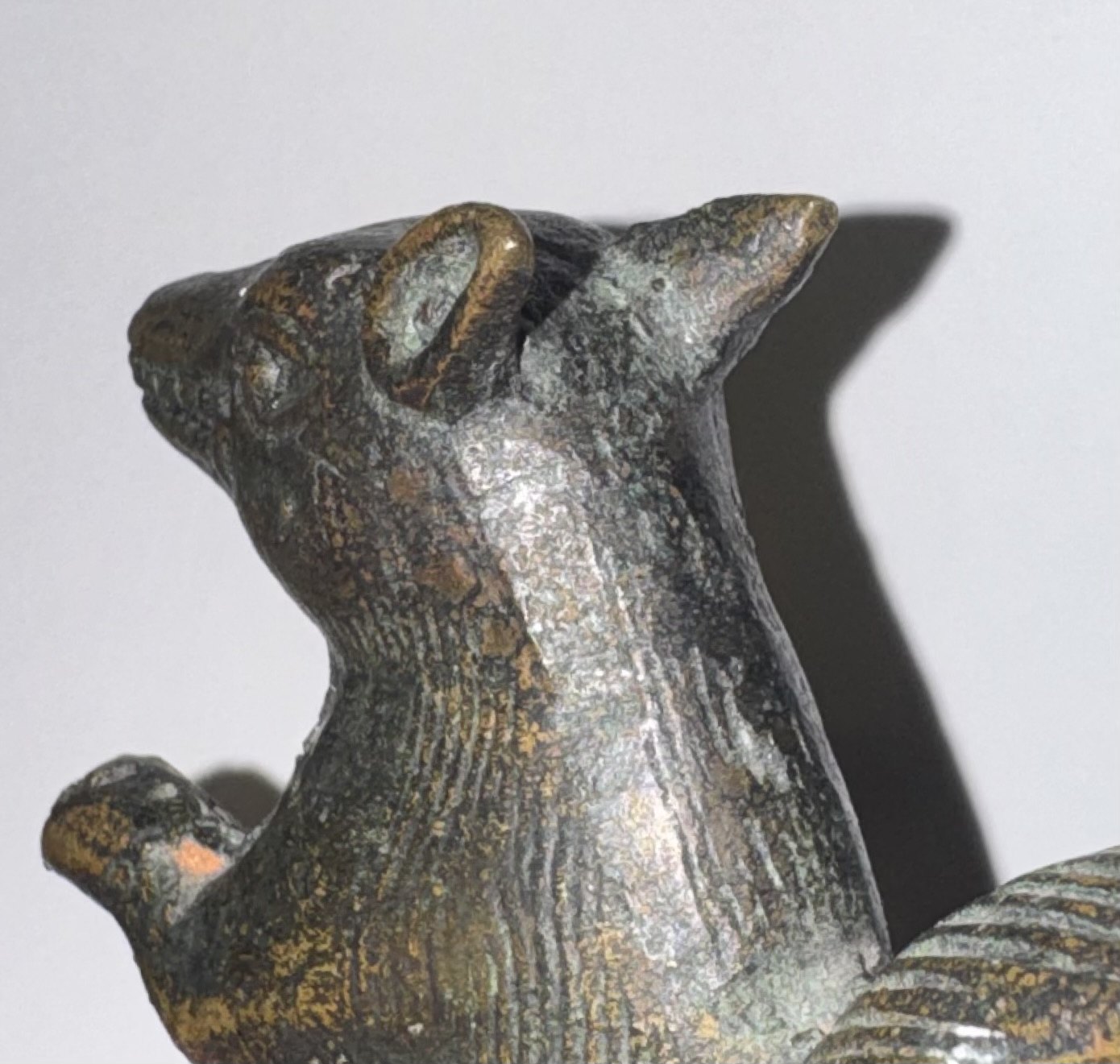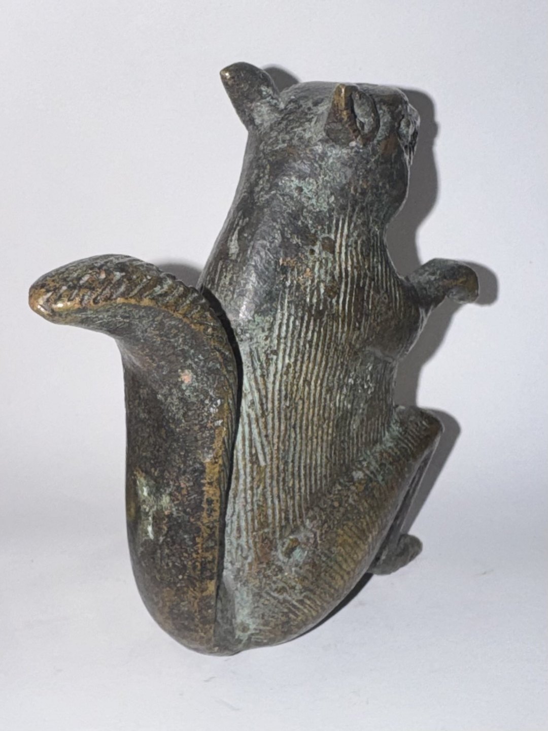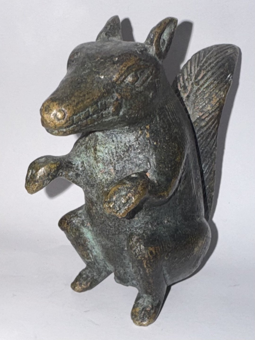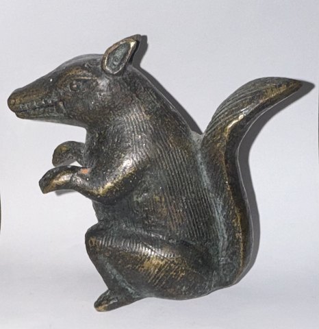 Figur af siddende egern udført i bronce. Formodes fremstillet omkring 1900. Oprindelse ubekendt. Fremstår i god stand uden skader eller reparationer. H. 8,5 cm Vægt 263 gram.