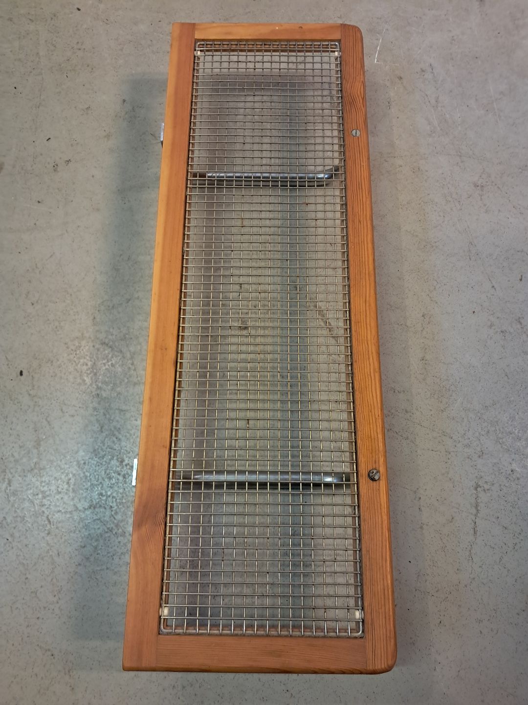 Hylde i metal og fyrretræ, fra 1980erne.Den har brugsspor.