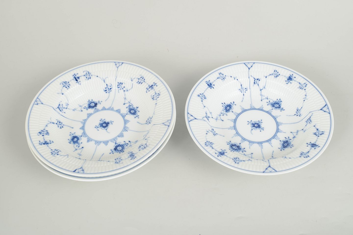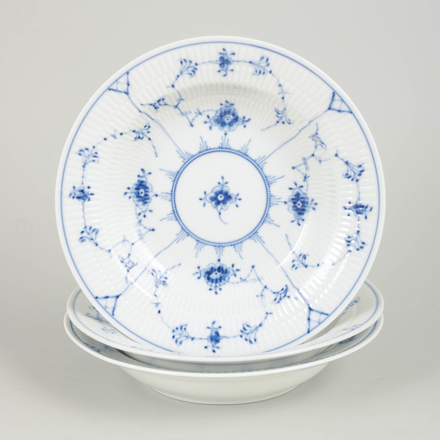 Royal Copenhagen Musselmalet Riflet, sæt af tre pasta-tallerkener.Beschreibung: