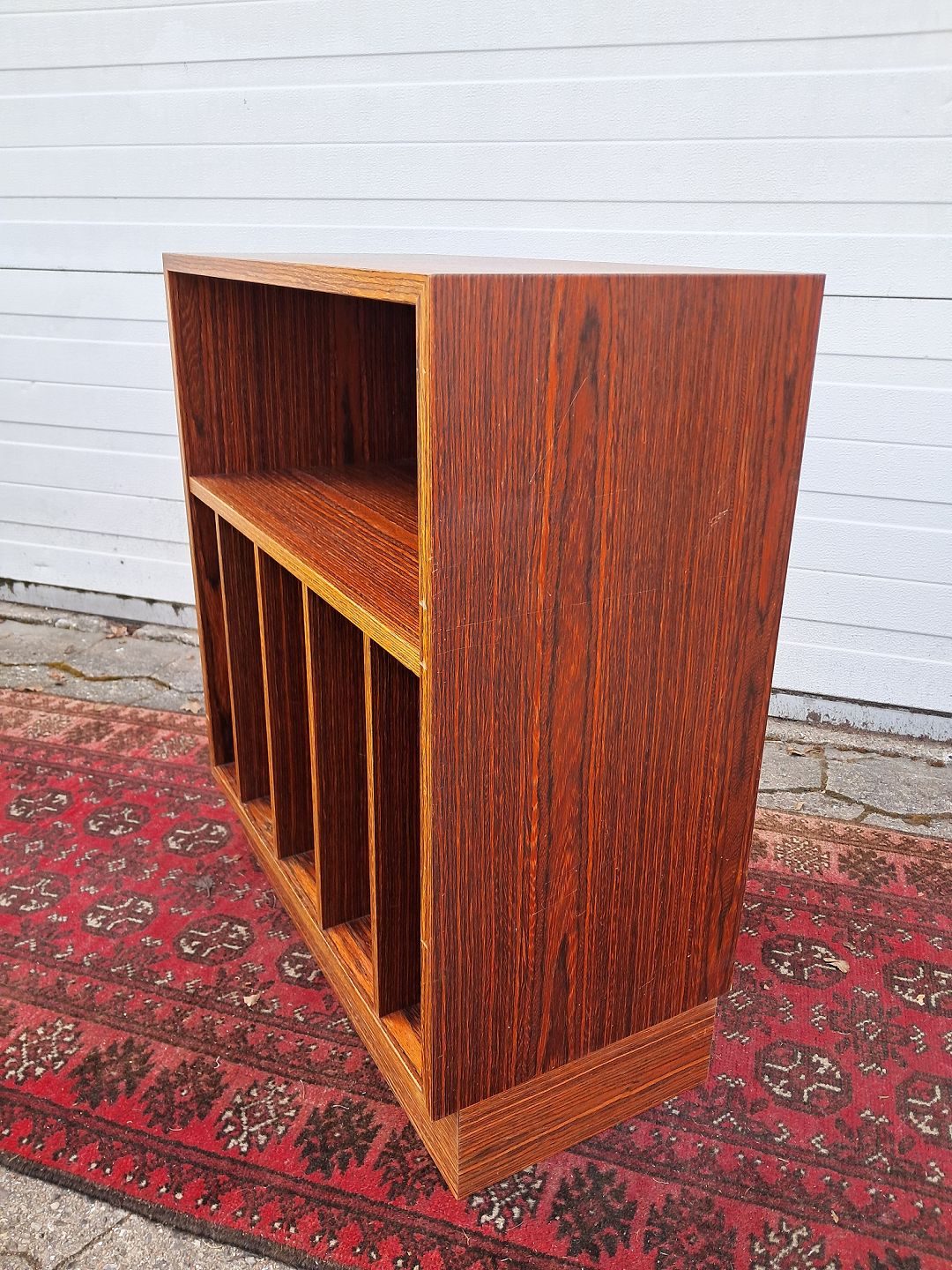 Reol i fineret palisander, fra 1970erne.Den har brugsspor.