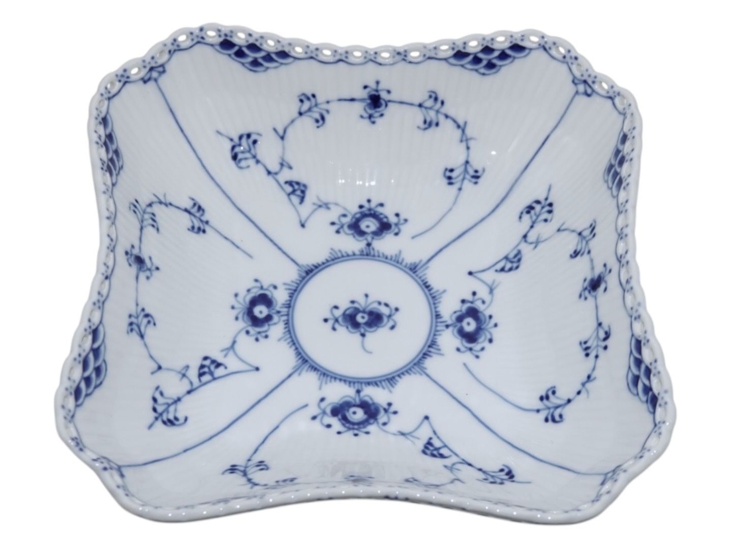 Royal Copenhagen Musselmalet Helblonde, firkantet kartoffelskål.Dekorationsnummer 1/1224.