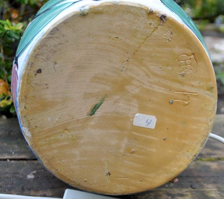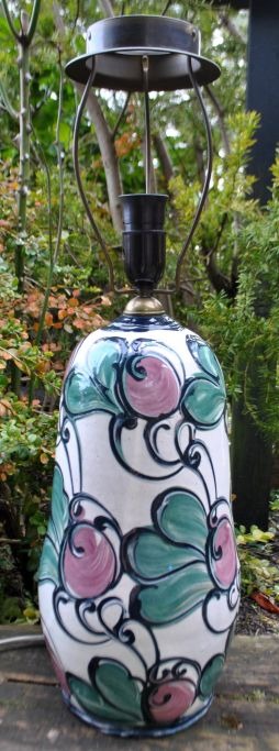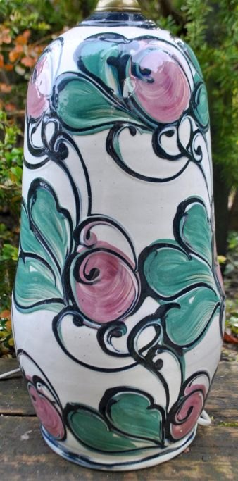 Tischlampe von Hornbæk Keramik, 20. Jahrhundert, Dänemark. Glasur in Weiß, Schwarz, Grün und Rosa. Gestempelt: HK. Höhe: 58 cm. Durchmesser: 16 cm.Bestellnummer: 29091