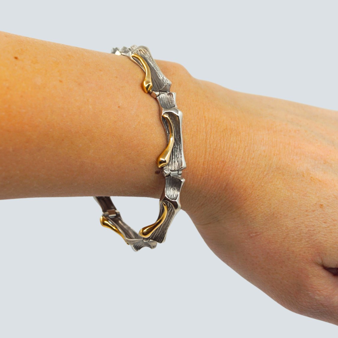 Ole Lynggaard; Leddelt armbånd i 14 kt. hvidguld og guld. Kasselås med sikkerhedslås.L. 17,5 cm