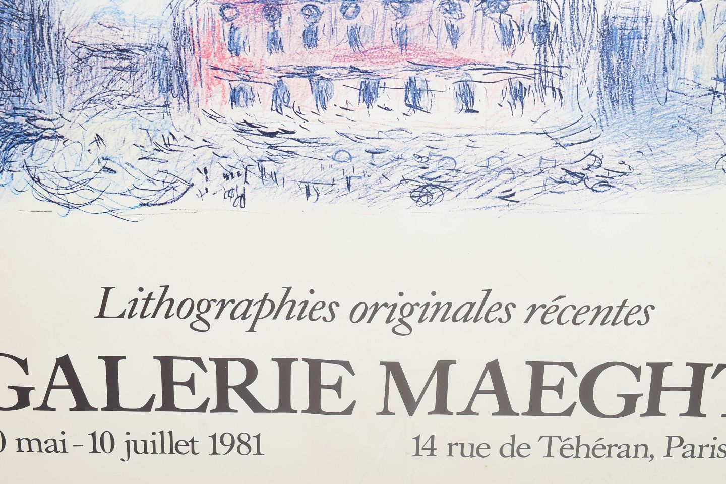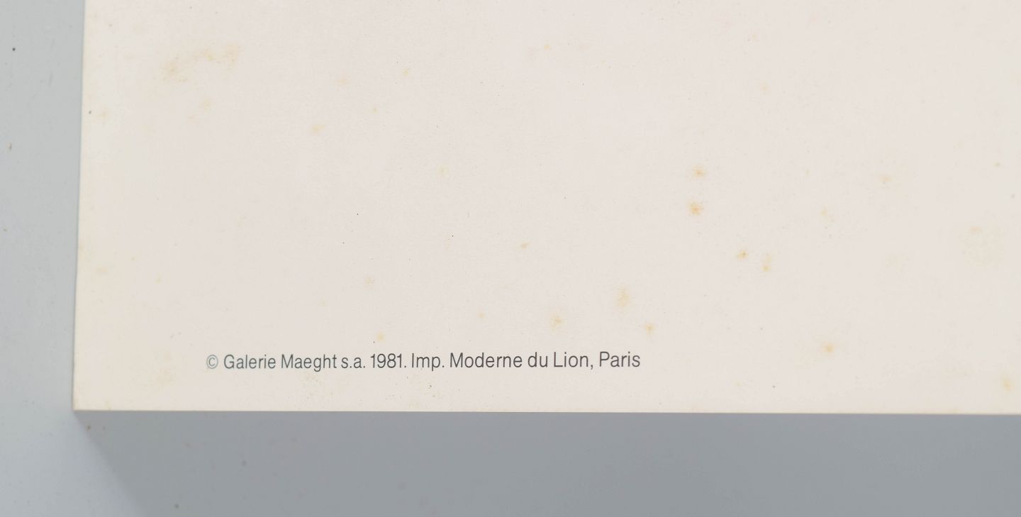Marc Chagall, udstillingsplakat for Galerie MaeghtFarverig plakat udgivet i forbindelse med udstillingen “Lithographies originales récentes” hos Galerie Maeght i Paris, 20. maj – 10. juli 1981. Motivet viser en karakteristisk poetisk og drømmende scene med svævende figurer og arkitektur, udført i Chagalls let genkendelige stil med bløde farver og lyrisk streg.