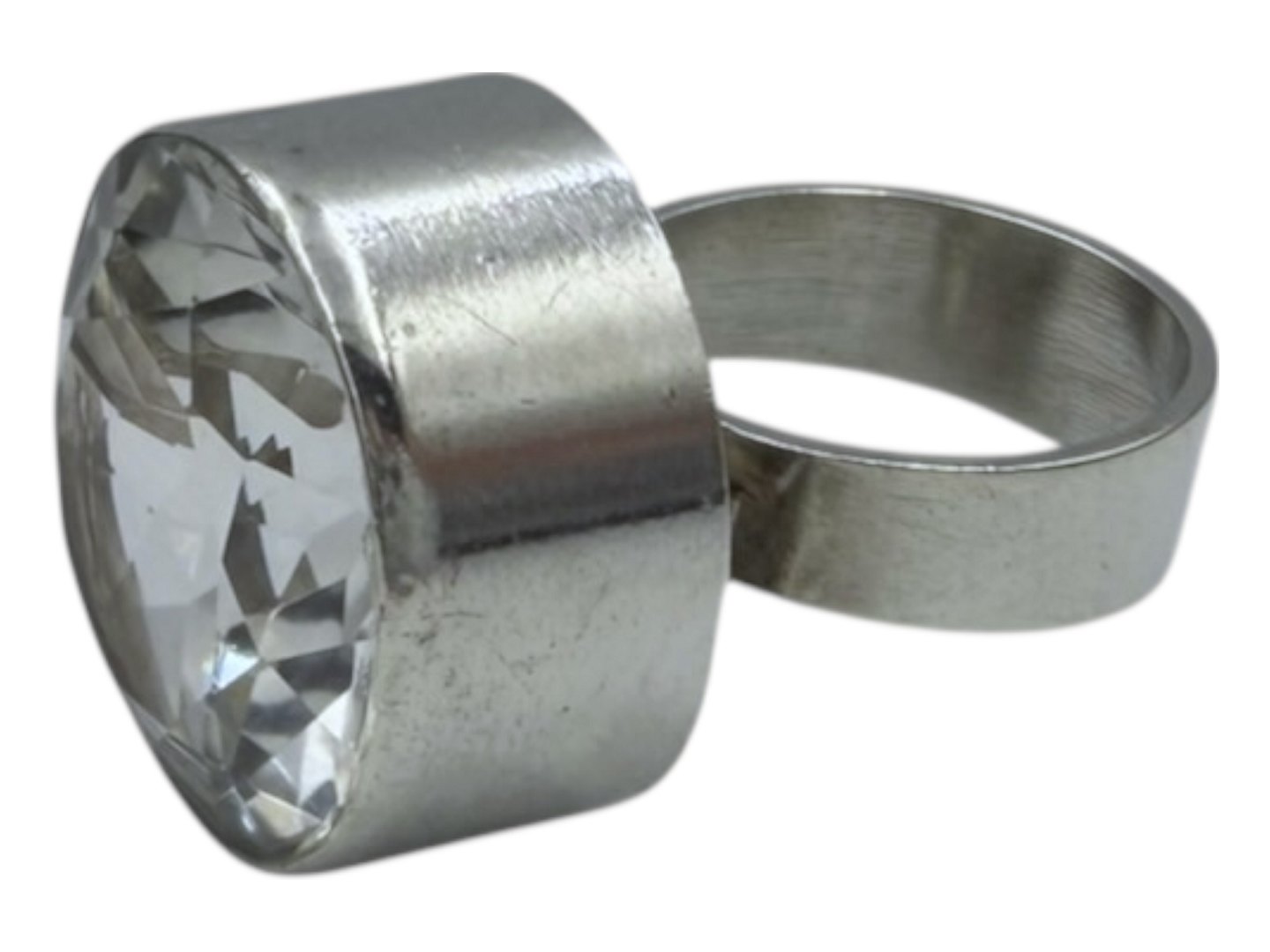 Niels Erik From sterlingsølv, stor ring med stor krystal.Stemplet "FROM 925S". N.E. From var sølvsmed i Randers og Nakskov fra 1944 og efter hans død i 1986 fortsatte selskabet med at lave smykker frem til 2009. Smykker fra N.E. From er kendt for deres høje kvalitet. Denne er fra ca. 1970.