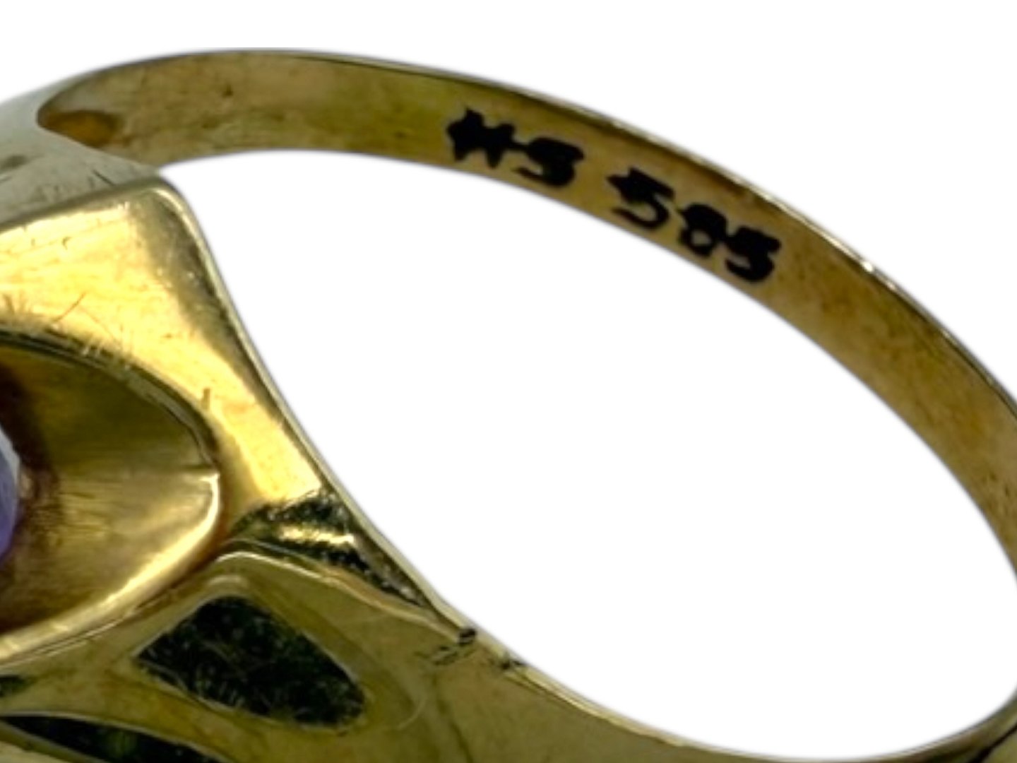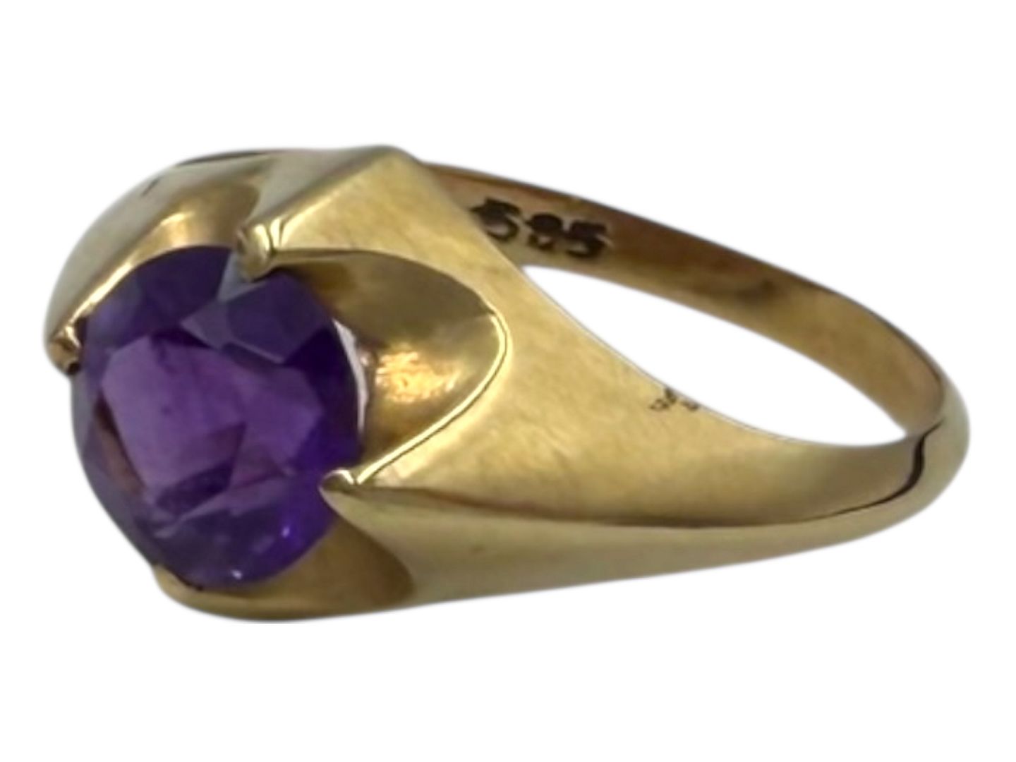 Herman Siersbøl, 14 karat guld ring med lilla ametyst.Stemplet "HS 585". Herman Siersbøl var sølv- og guldsmed i Kastrup fra 1948 til ca 2000. Denne er fra omkring 1960.