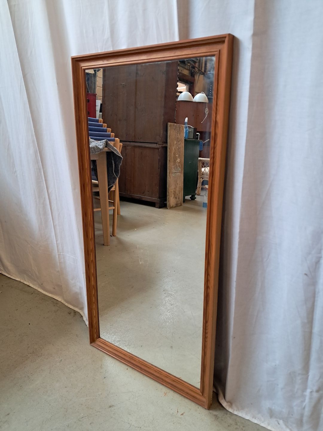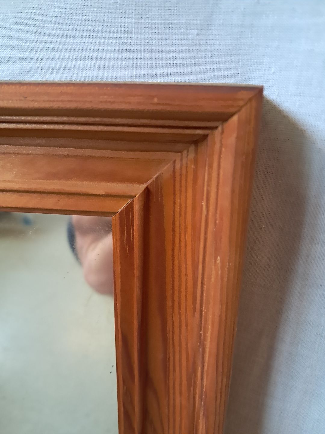 Spejl i ramme af fyrretræ, fra 1980erne.