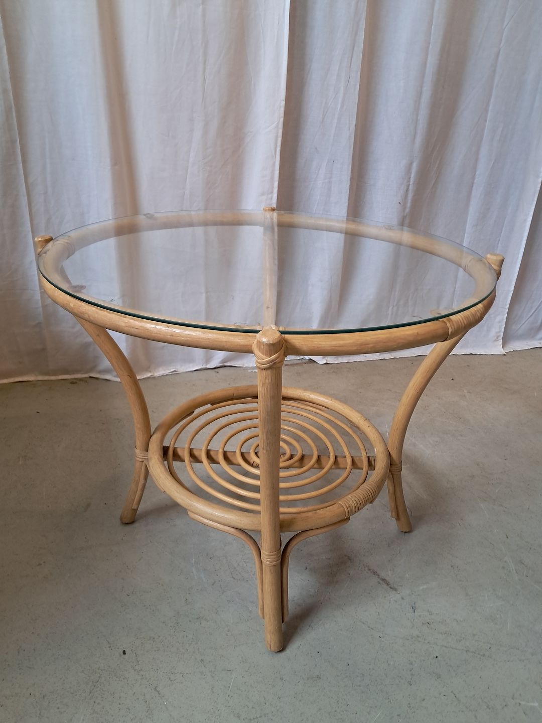 Bord i bambus med glasplade, fra 1990erne.