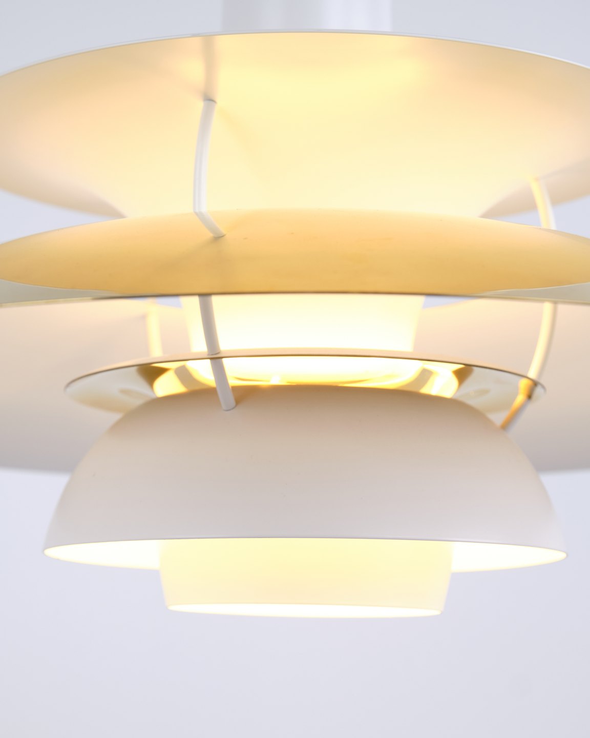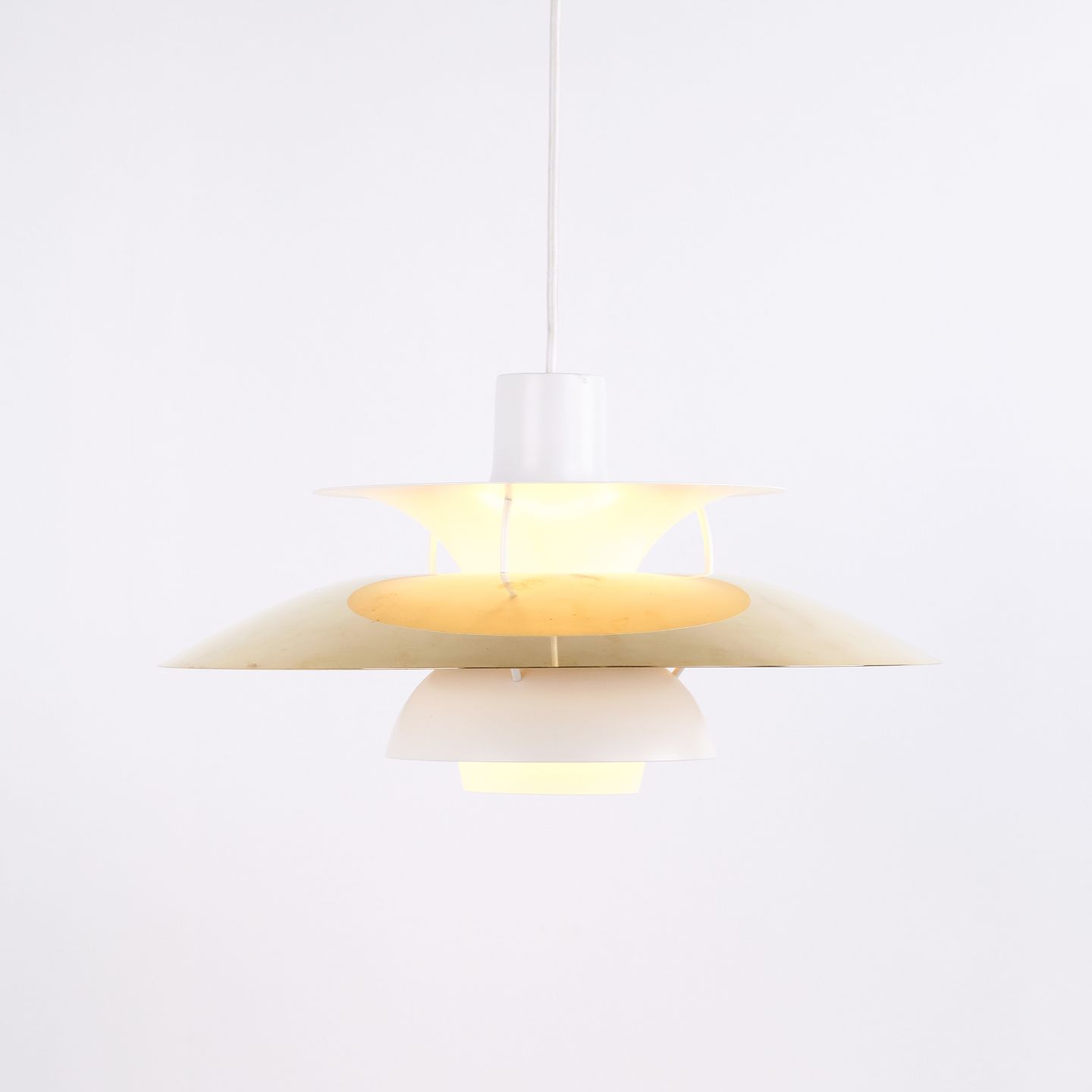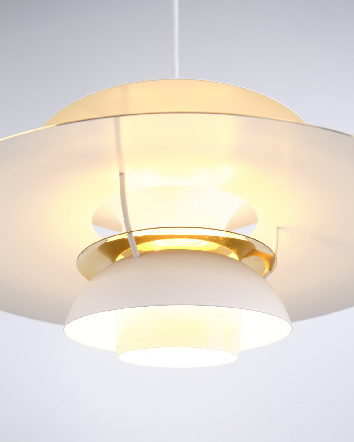 PH 5 Pendelleuchte aus Messing von Louis Poulsen, entworfen von Poul Henningsen. Klassische dänische Leuchte mit blendfreiem und funktionalem Licht.— Herkunft: Dänemark