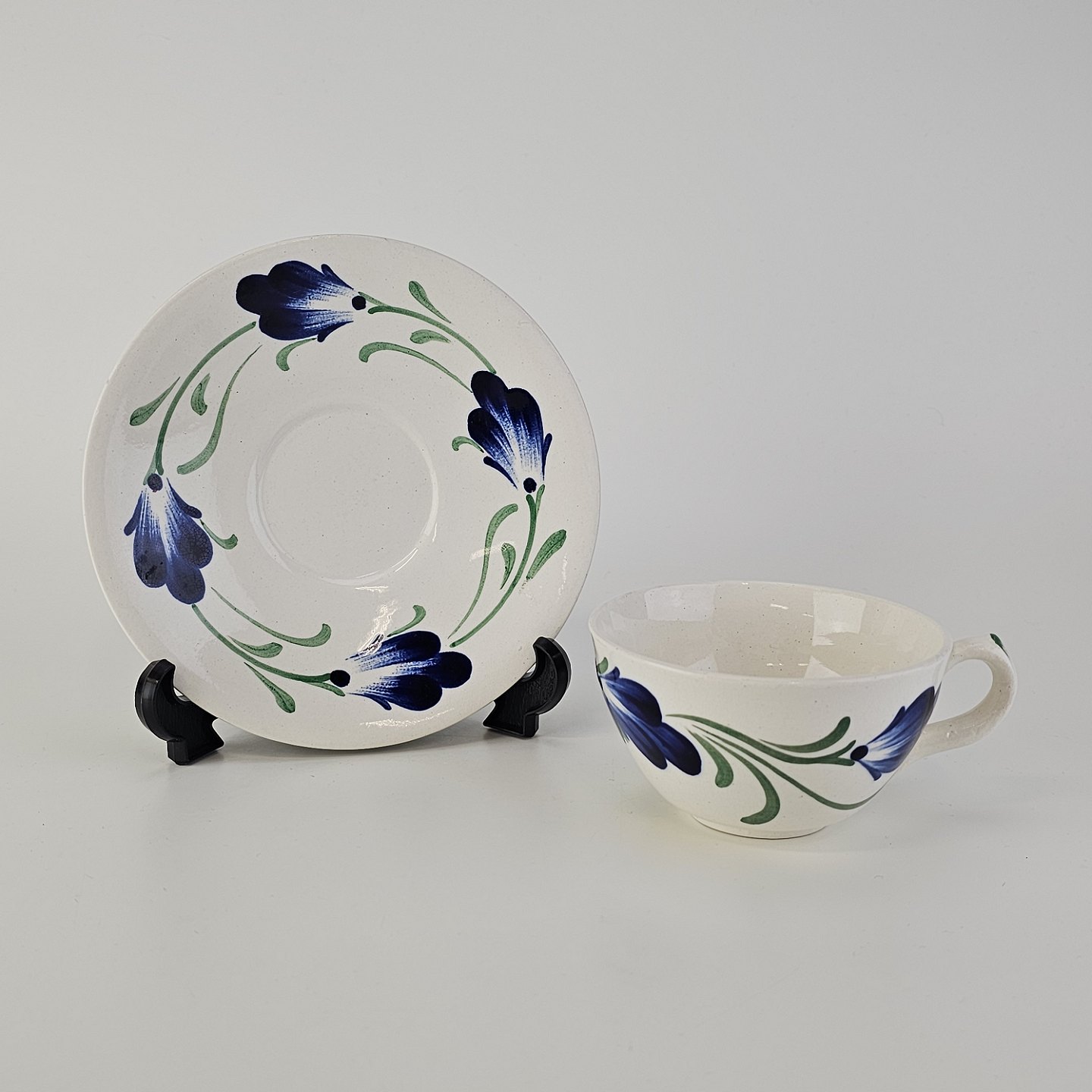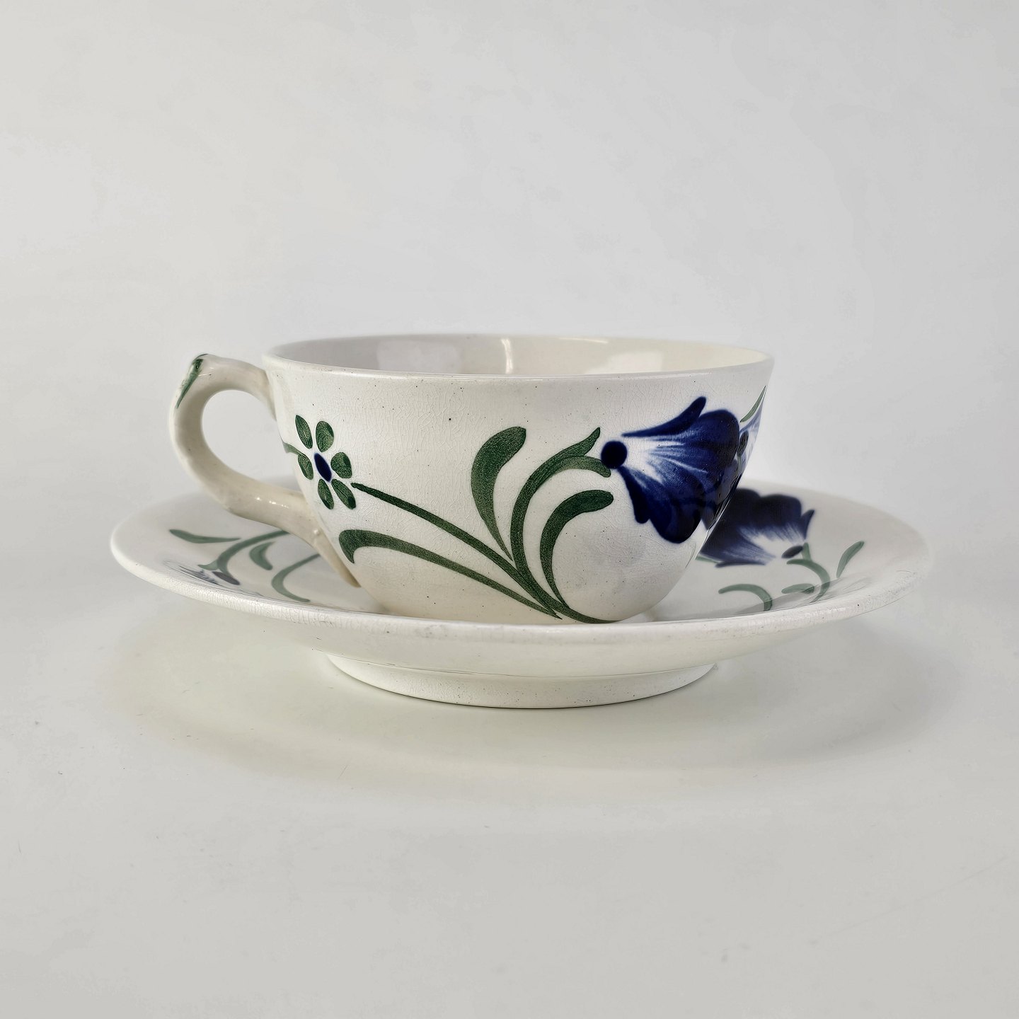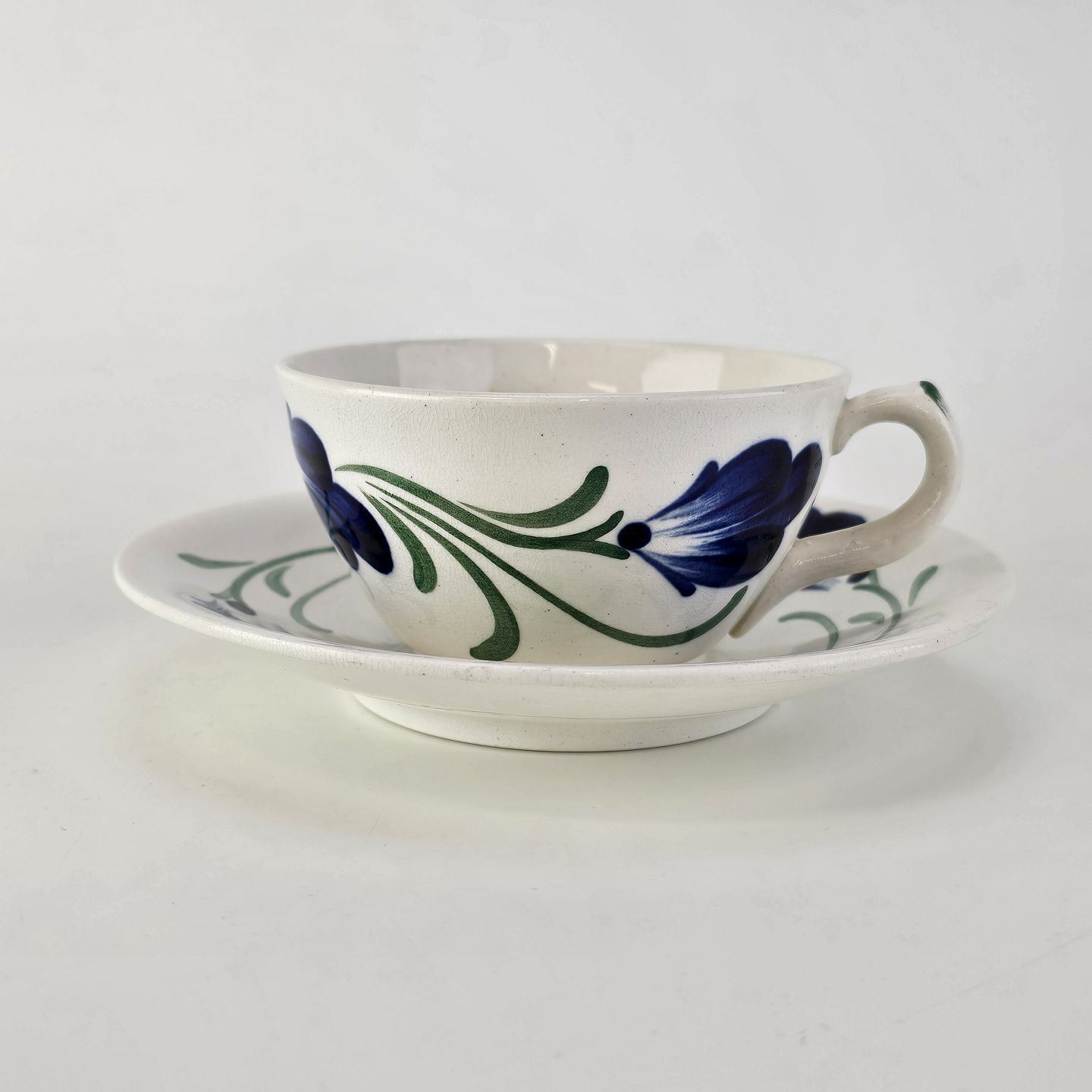 Kop med underkop i hvid fajance fra stellet Blå CenerarierNr. 187/153