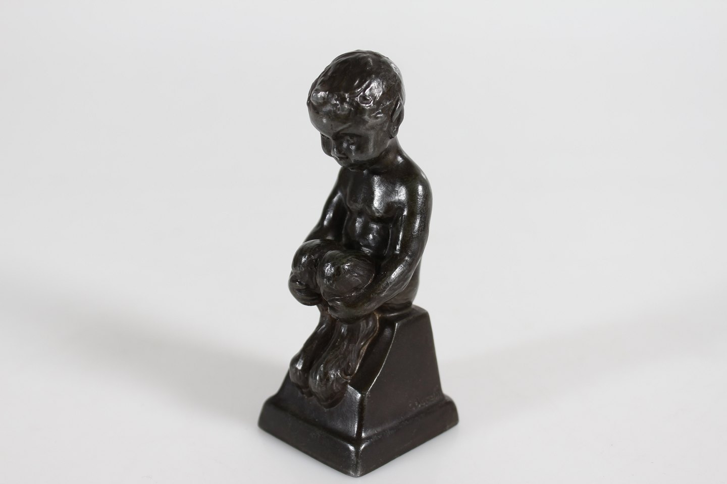 Just Andersen og E. Borch (1869-1950)Siddende lille Faun af patineret disco metal
