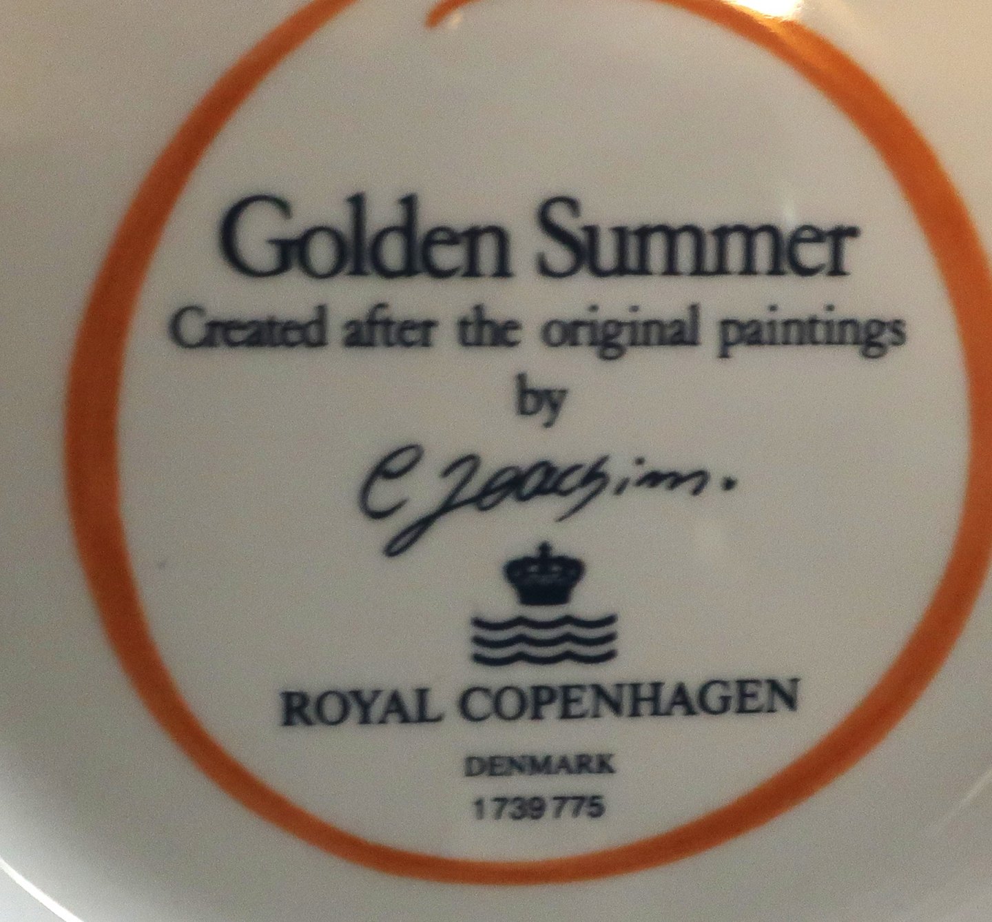Royal Copenhagen. Goldener Sommer. Schale mit Henkel. Modell 775. Durchmesser 18 cm. Händler