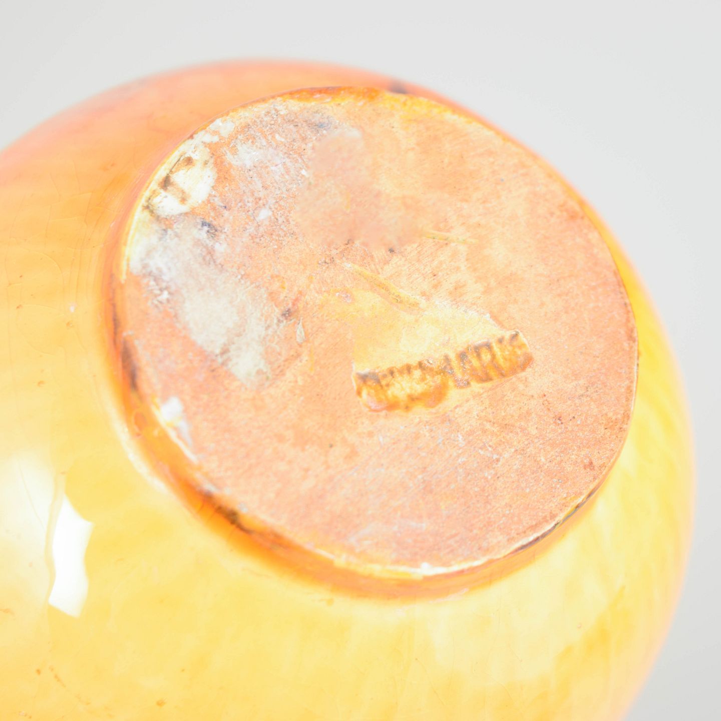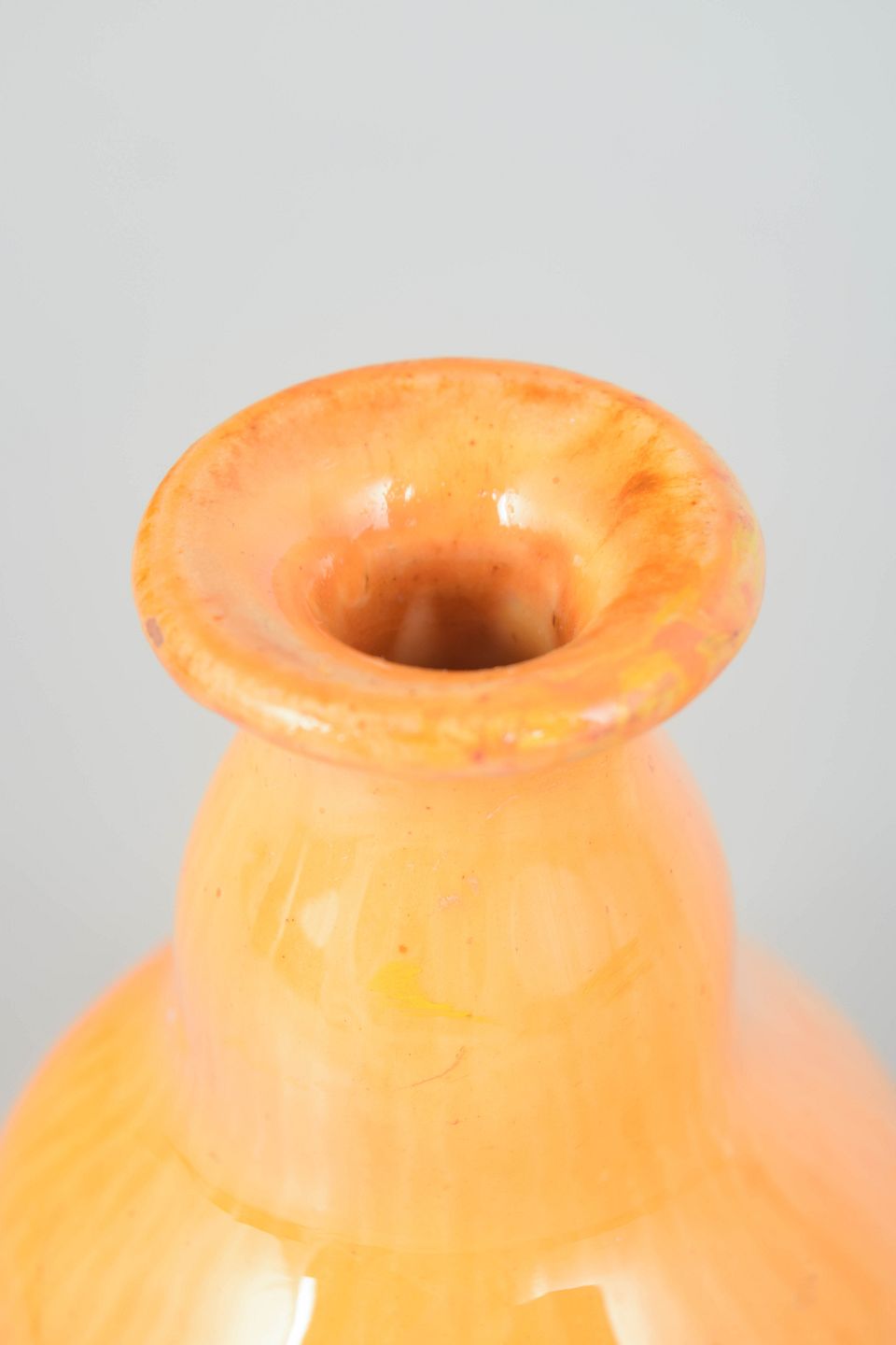 Svend Hammershøi for Kähler, vase med gul glasur.Elegant vase i glaseret lertøj med blød balusterform og let udsvungen rand. Udført i lys gul glasur med varme orange toner og fin vertikal stribning i overfladen, typisk for Hammershøis arbejde med levende glasurer.